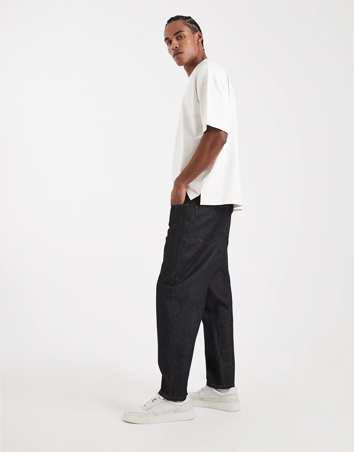 Tylko produkt ASOS DESIGN – Circular Design Collection – Grube, luźne jeansy o zwężanym kroju, w kolorze indygo jest częścią ASOS Circular Design Collection.