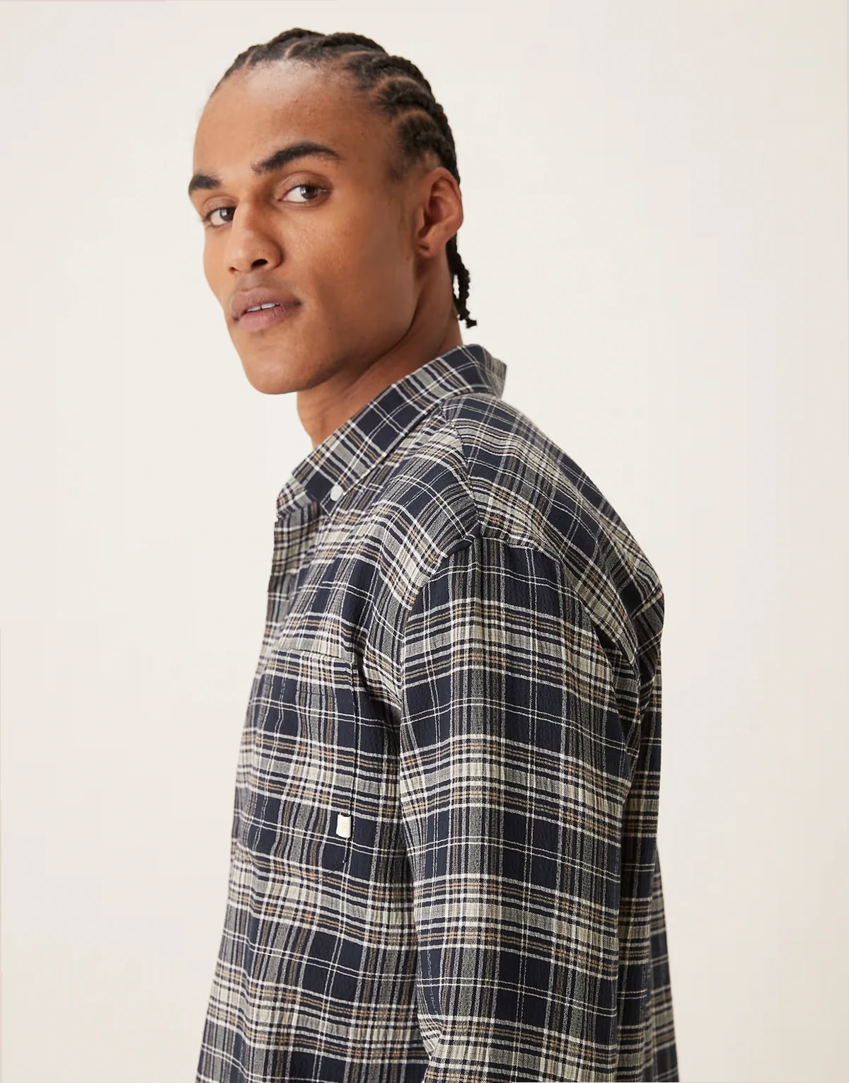 – Sands – Koszula w granatową kratę z długimi rękawami i logo