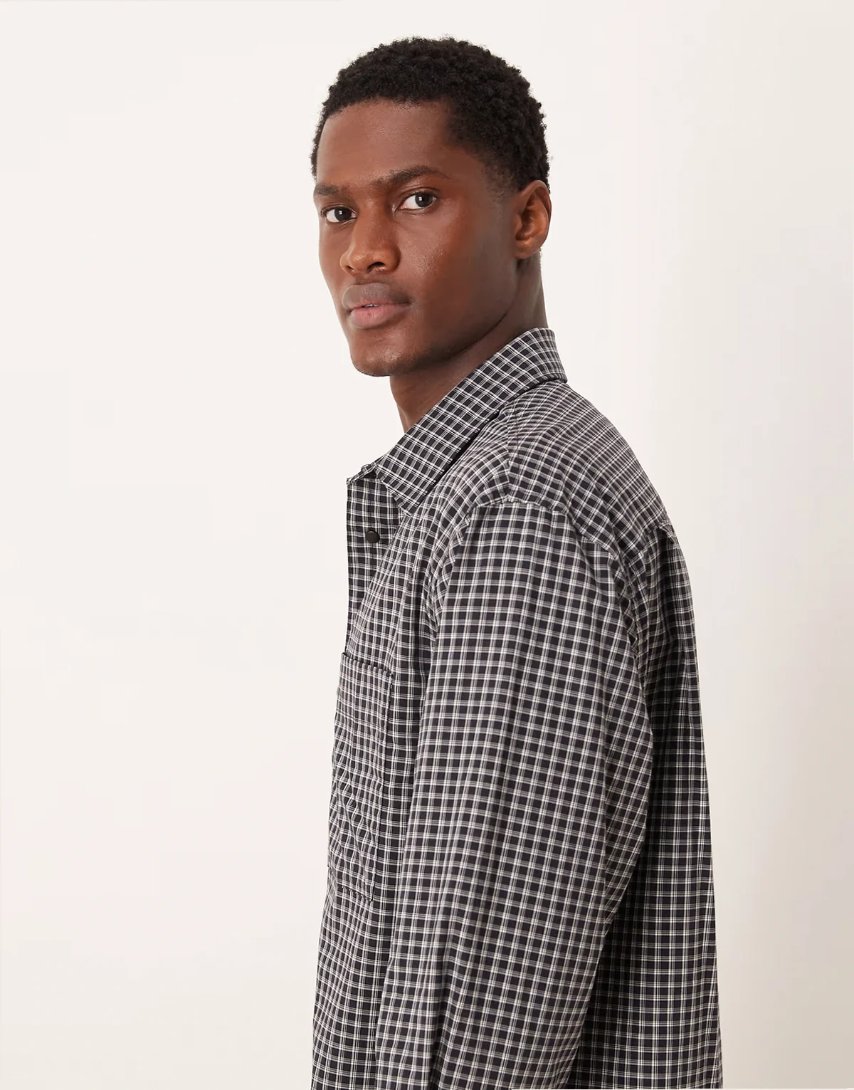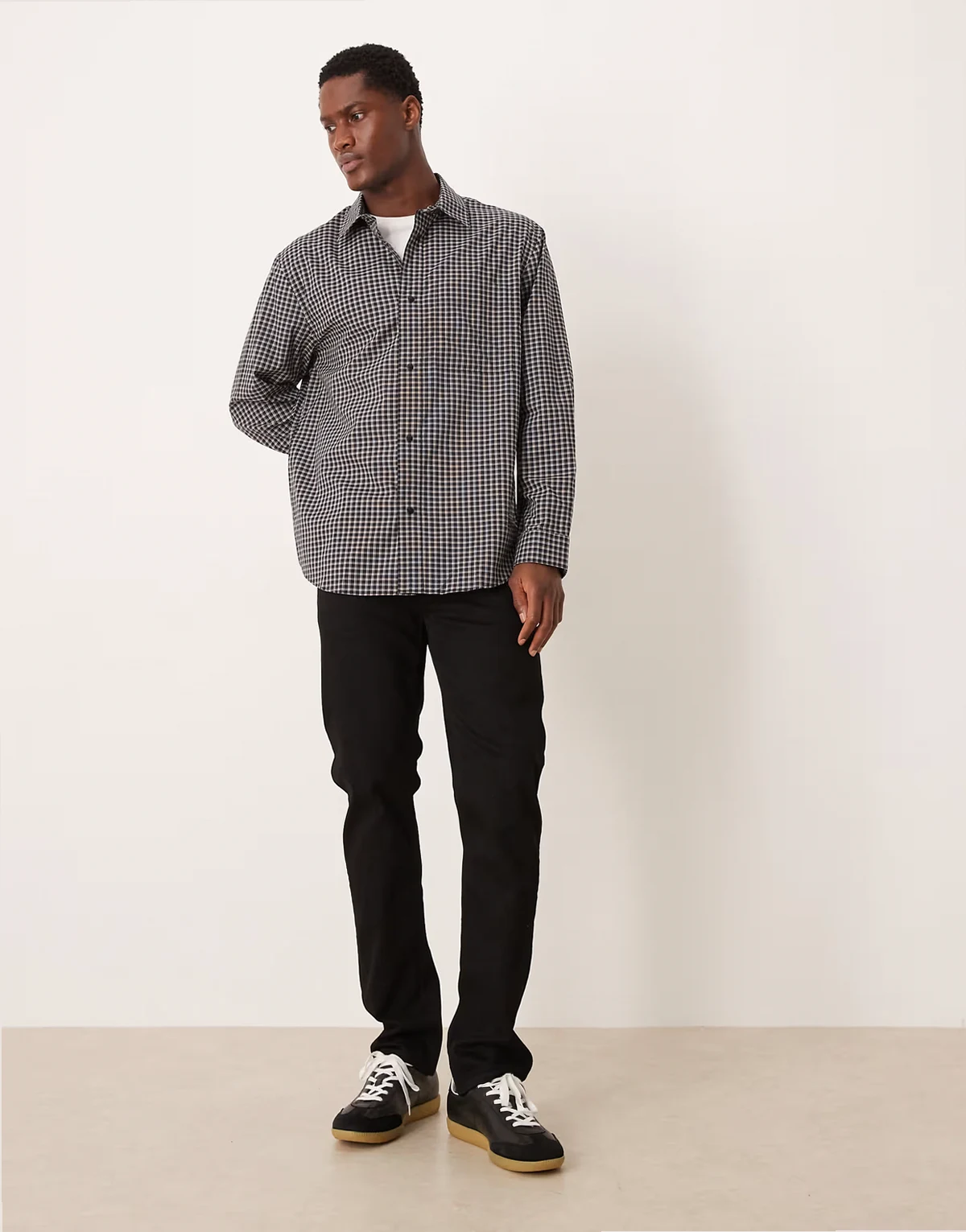 – Czarna koszula bawełniana ze wzorem w kratę