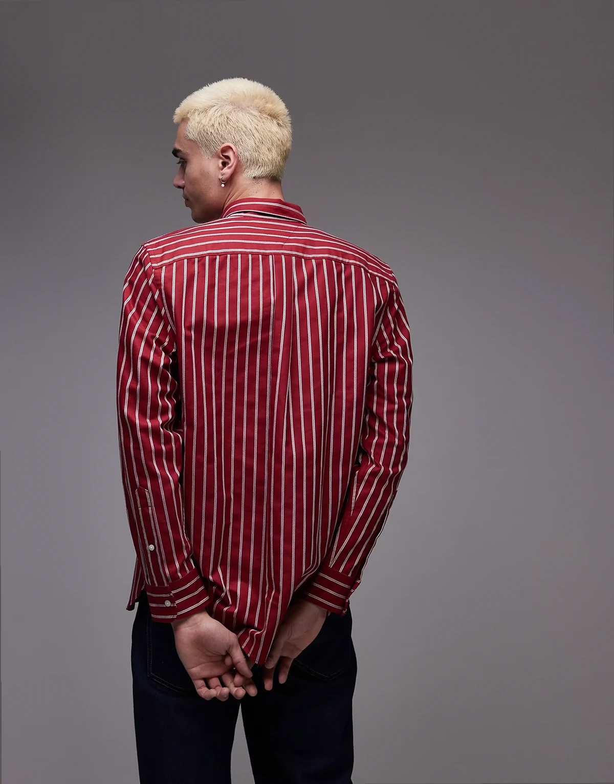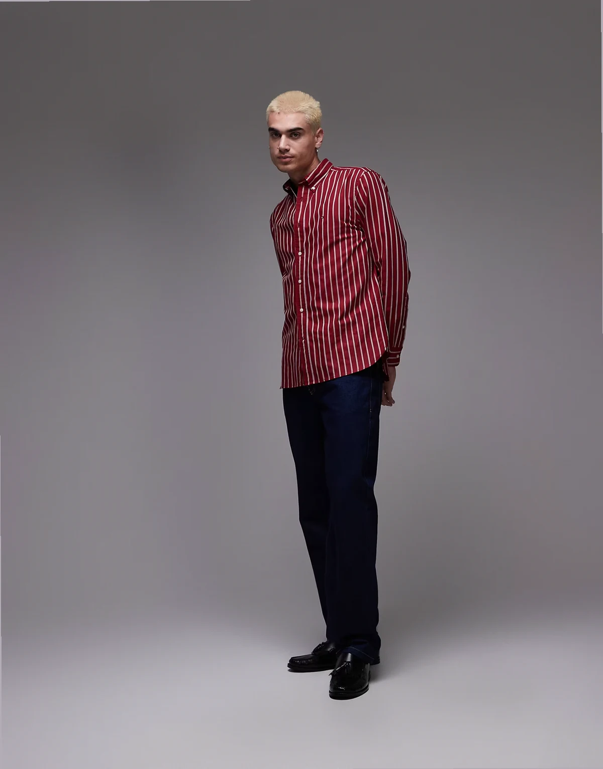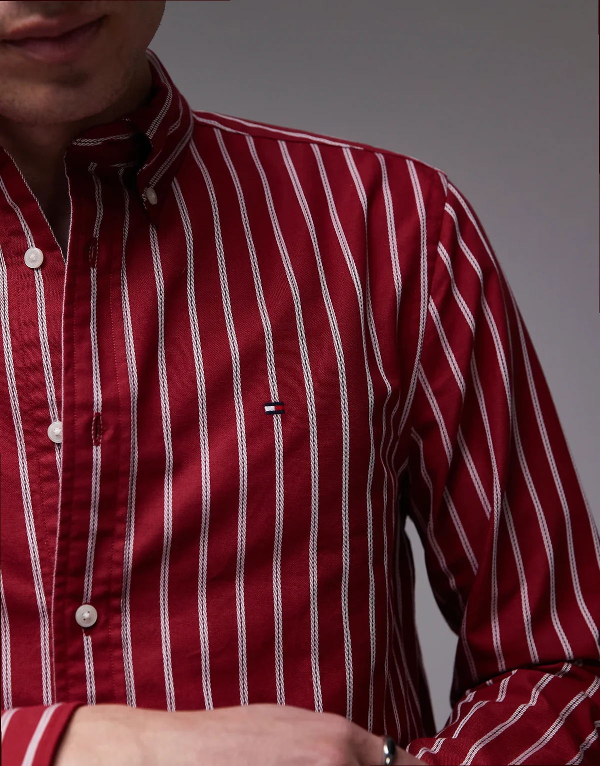 – Czerwona koszula oxford w paski