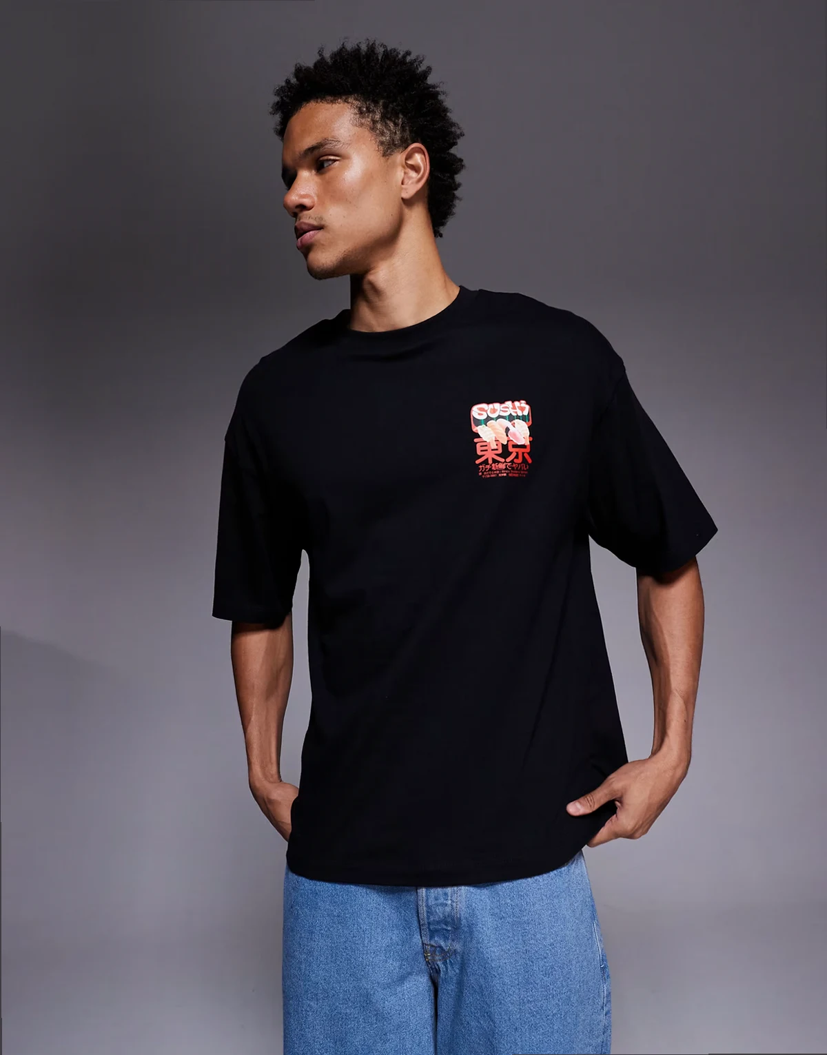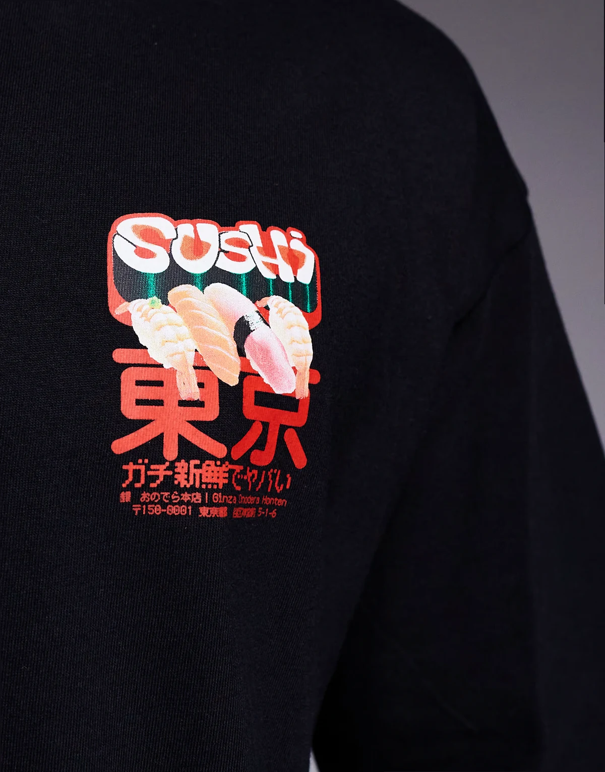 Grafika sushi z napisem z przodu i z tyłu