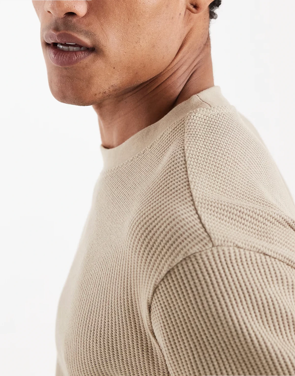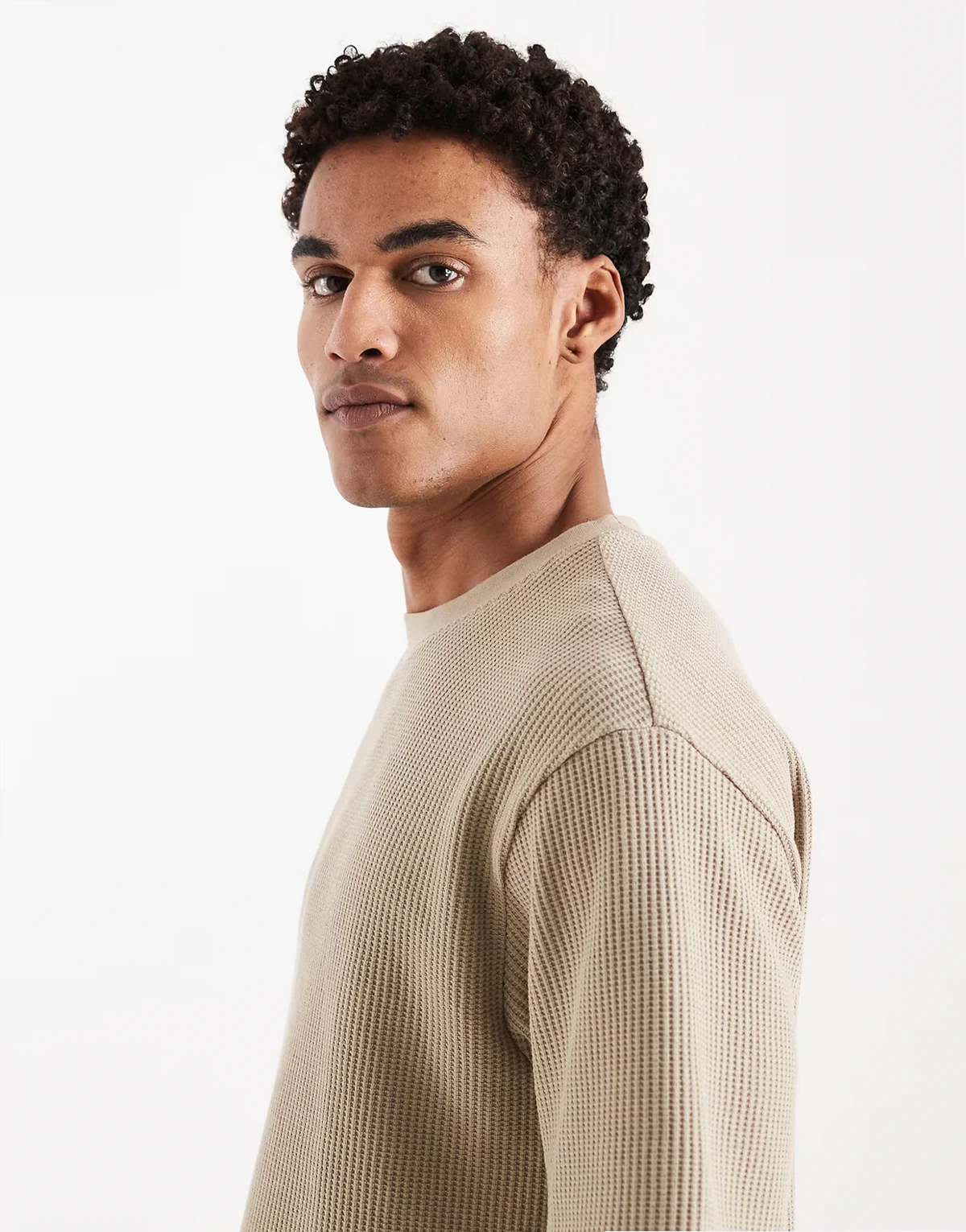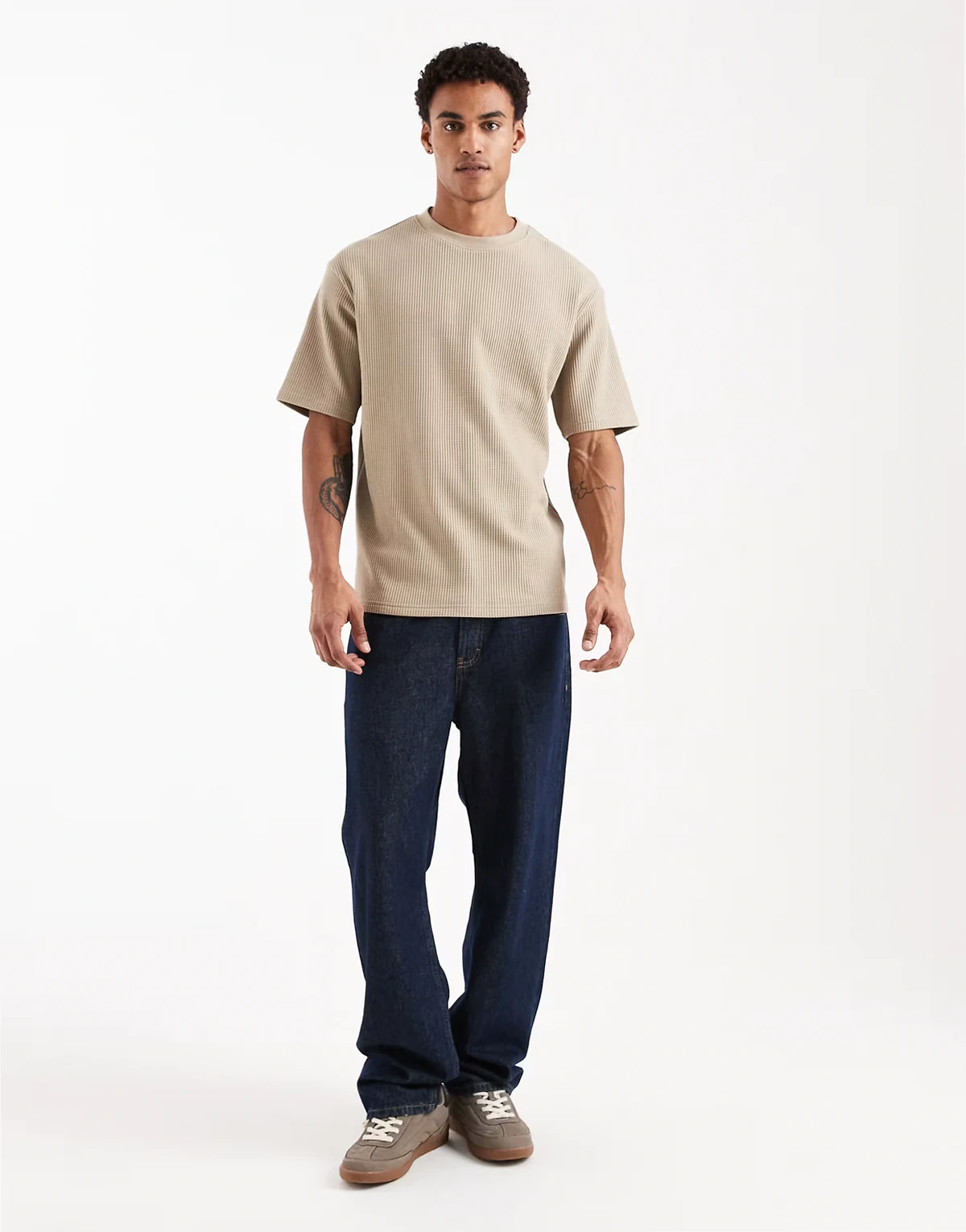 BIAŁY Prążkowany t-shirt z długimi rękawami
