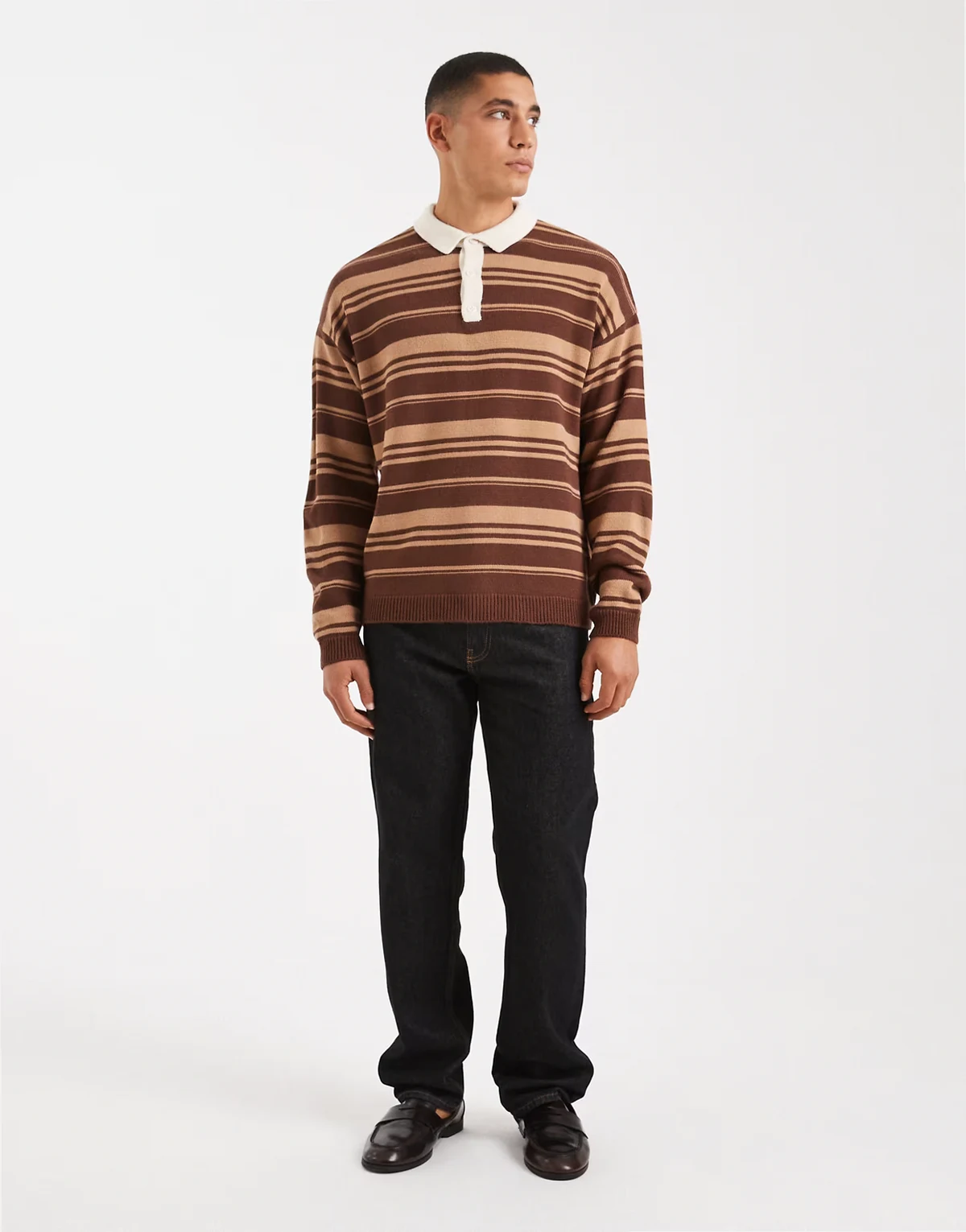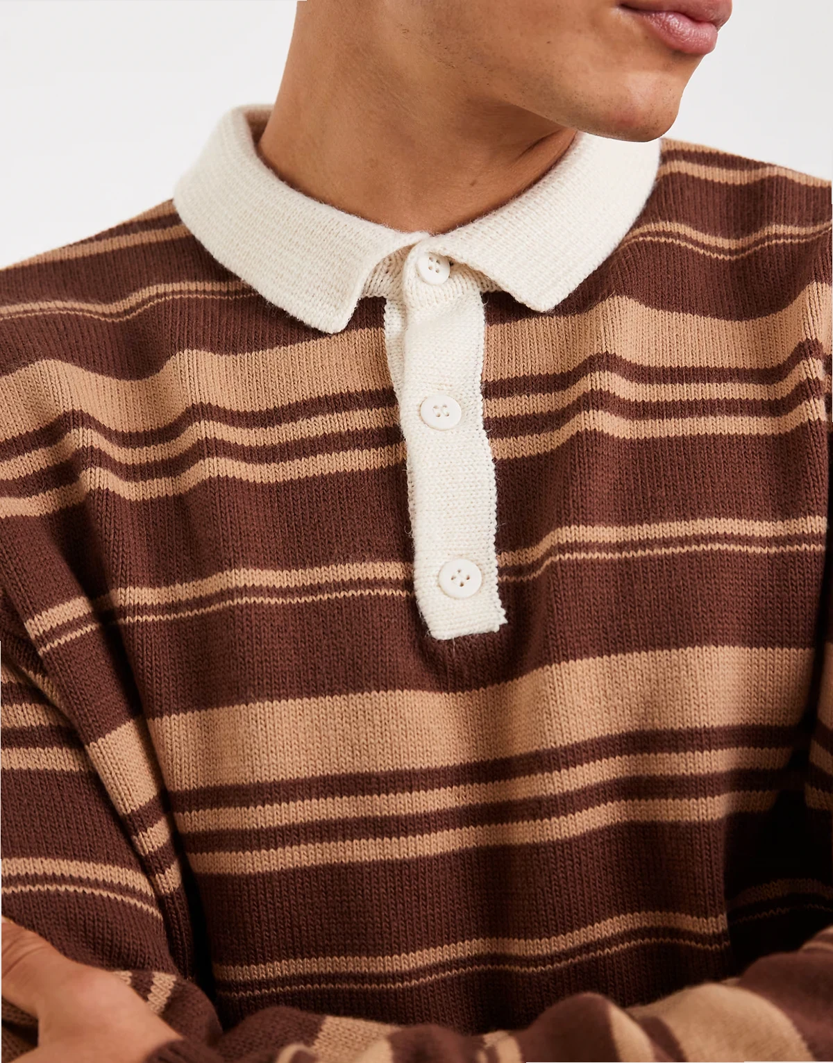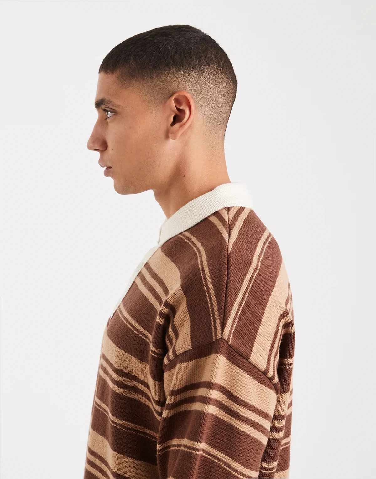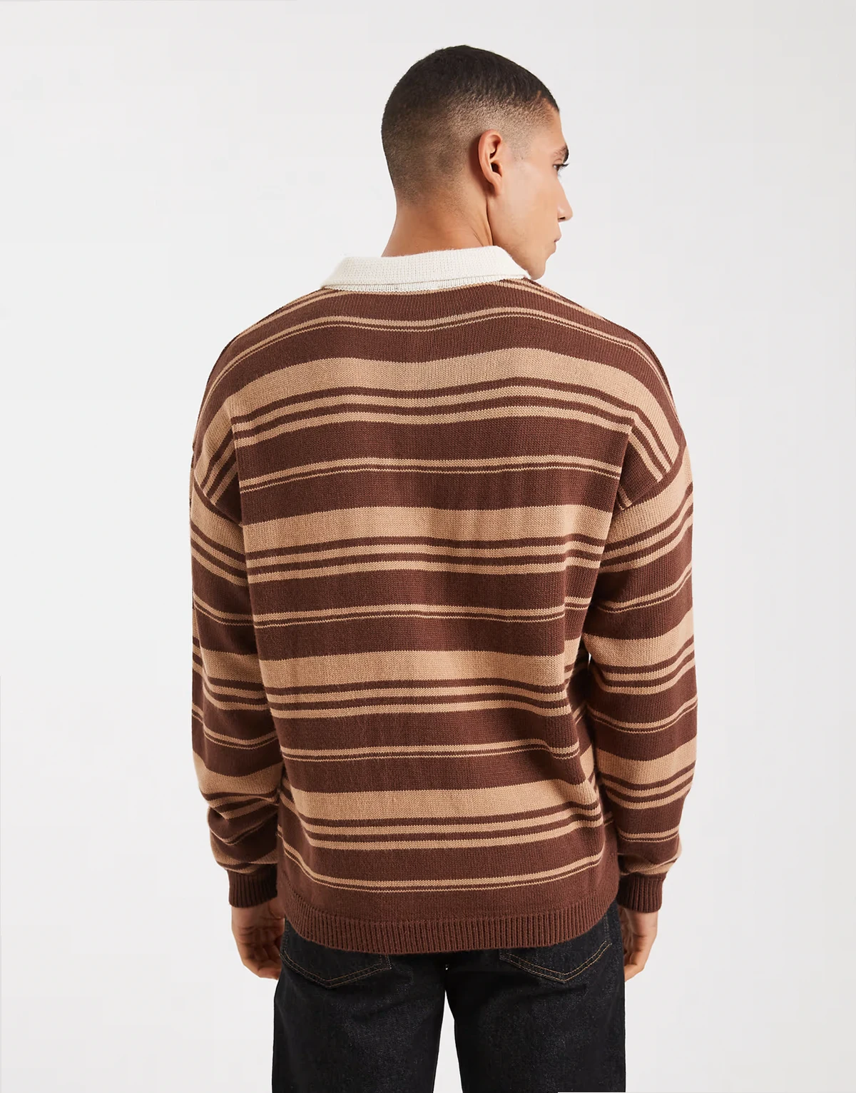– Koszulka polo w stylu rugby o luźnym kroju w paski w kolorze brązowym i taupe