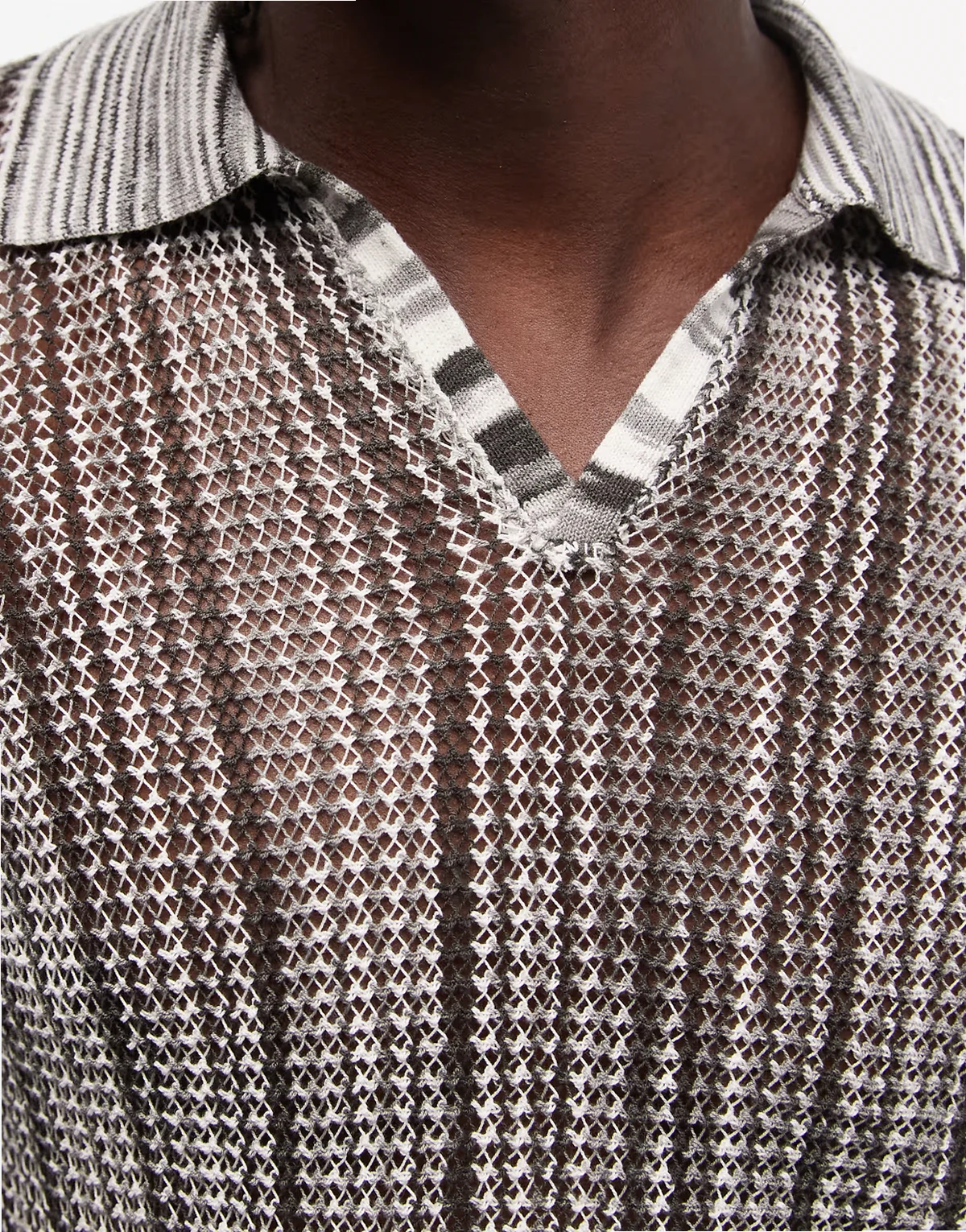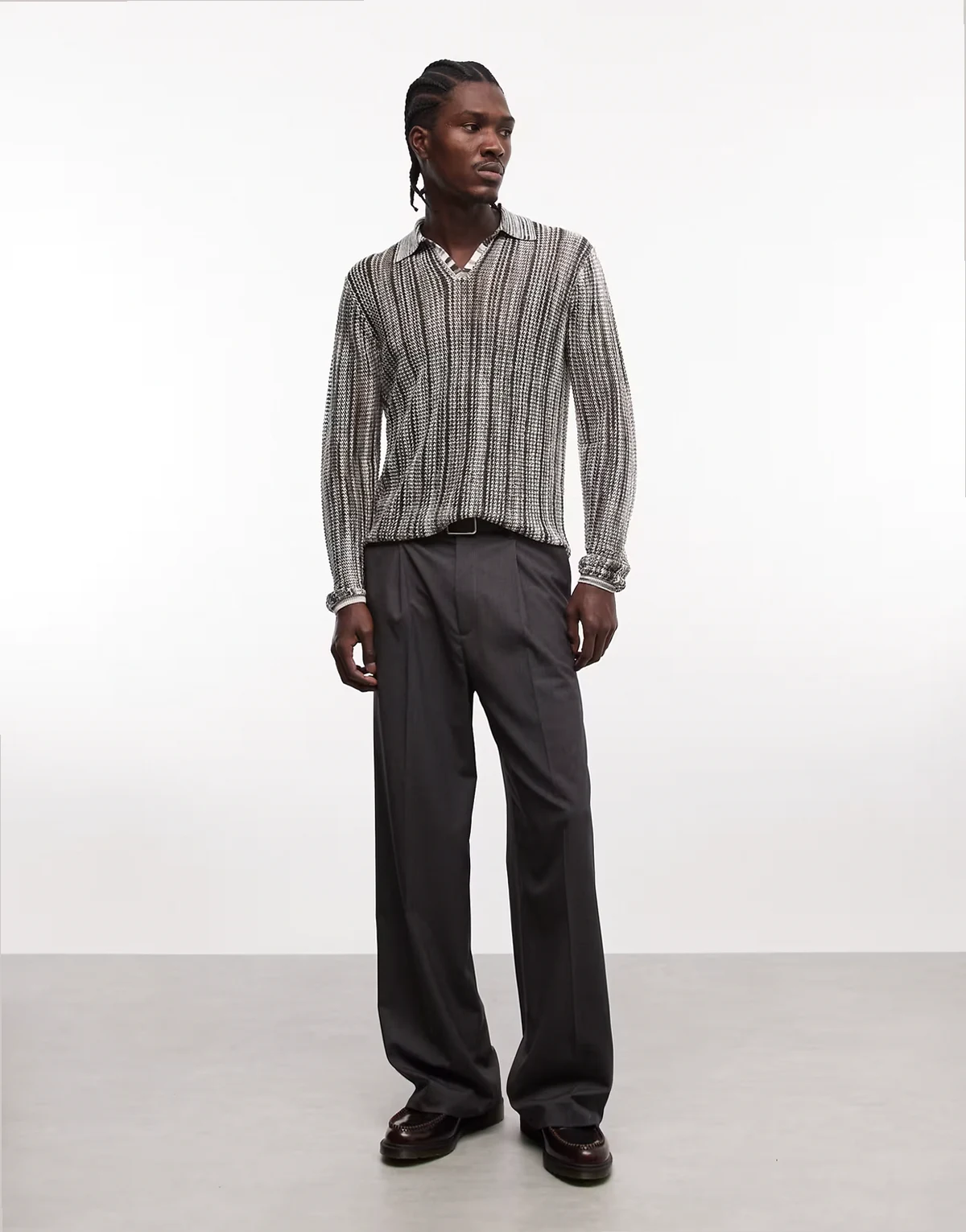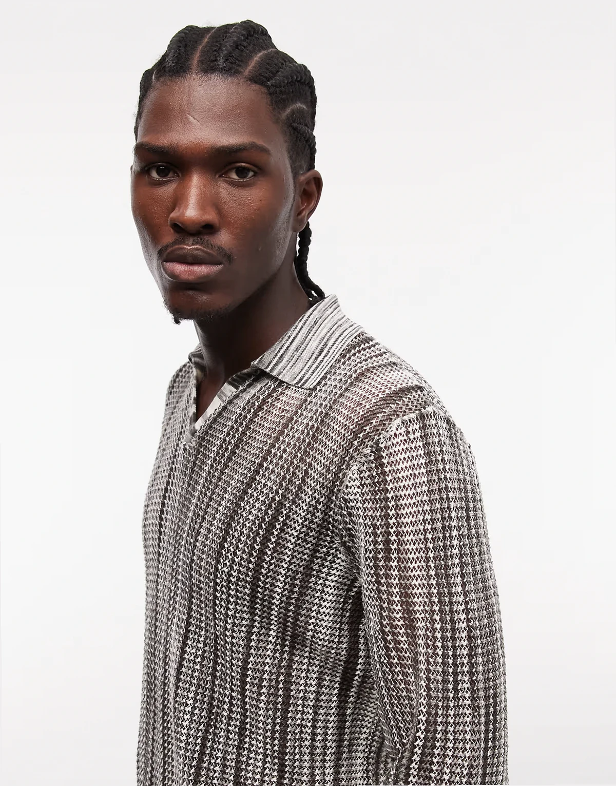 – Kolorowa dzianinowa koszulka polo z długimi rękawami i wycięciem w dekolcie