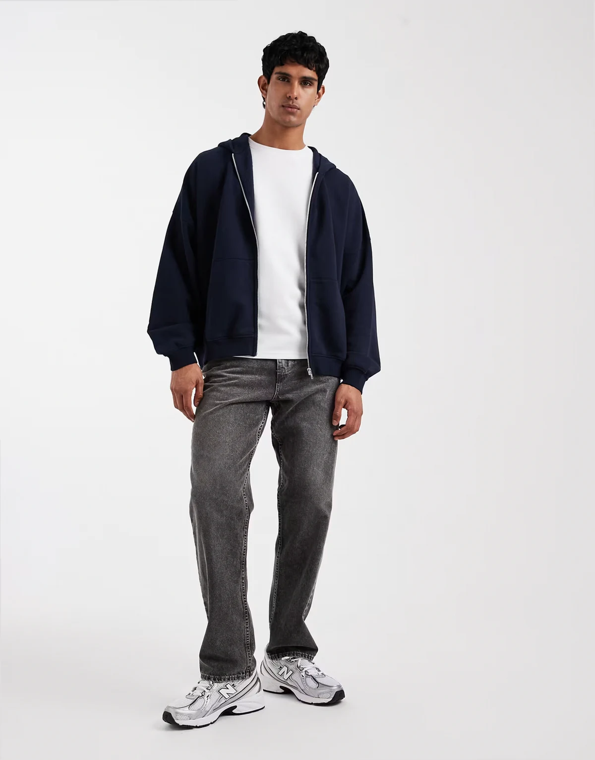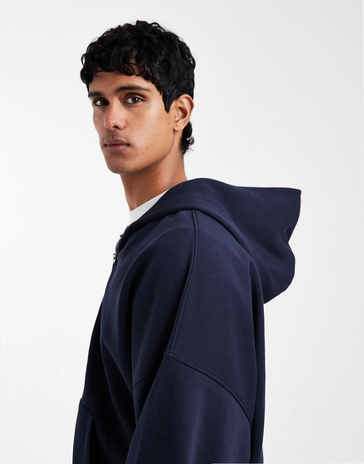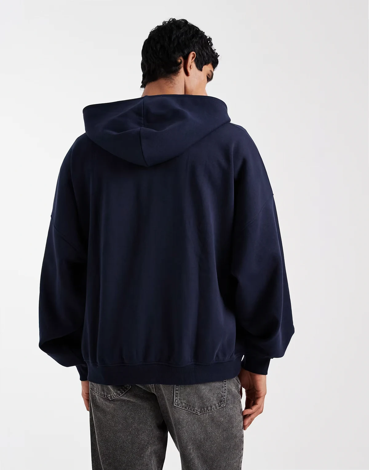 – Essentials – Zapinana na zamek granatowa bluza z kapturem o fasonie extreme oversize