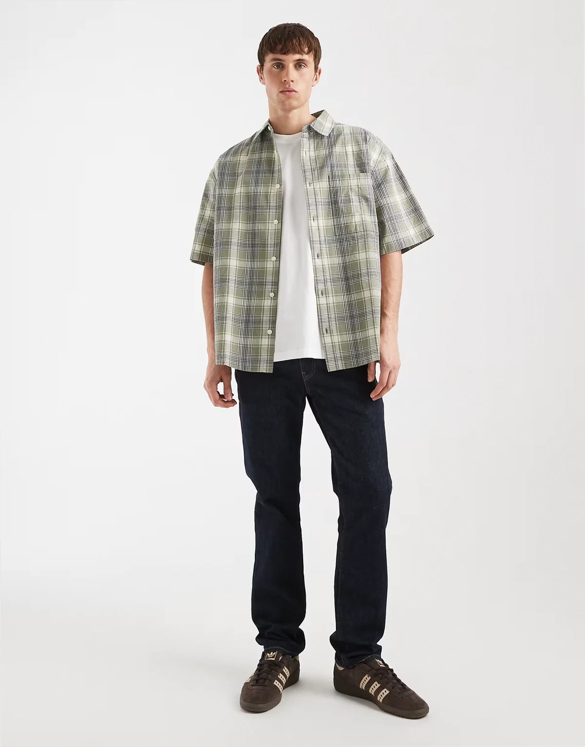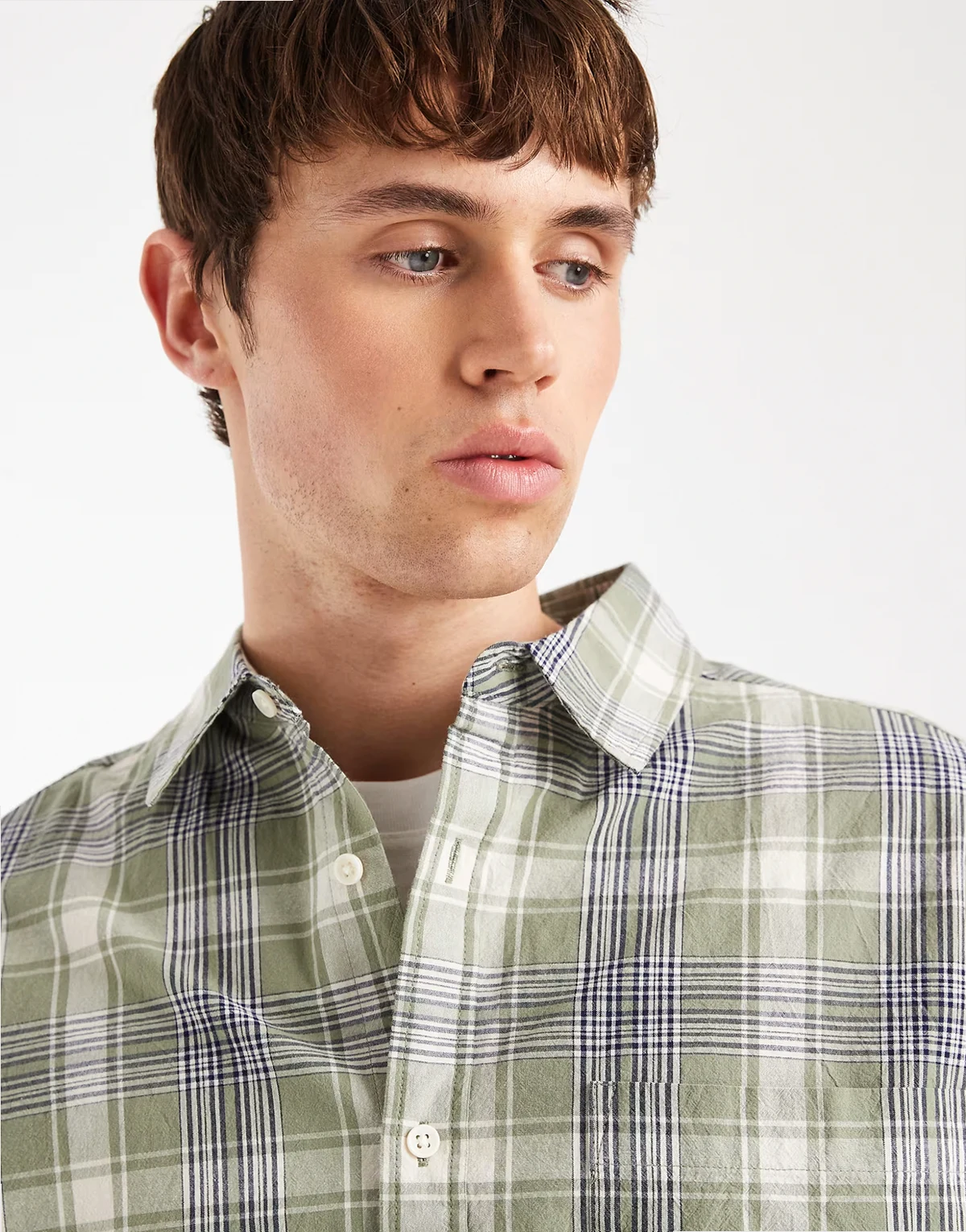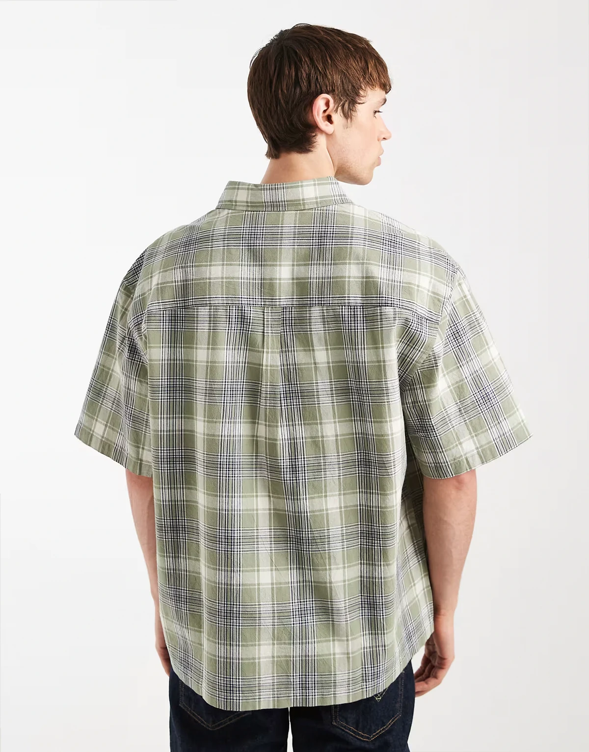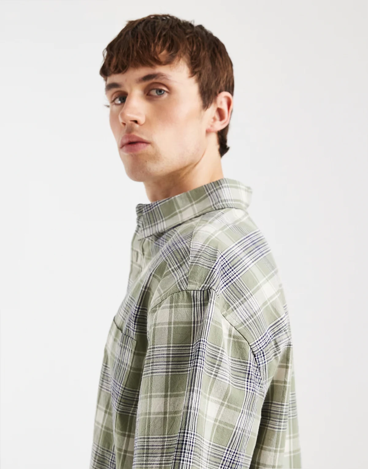 – Koszula oversize w kratę, w kolorze khaki