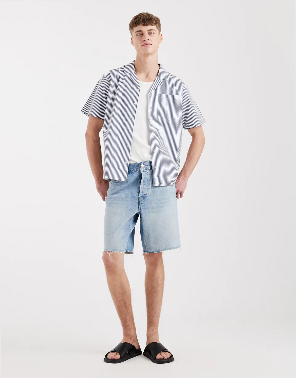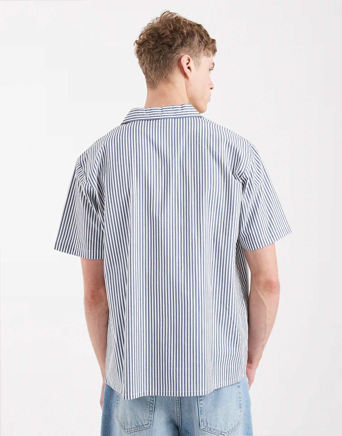 – Granatowa koszula plażowa w paski