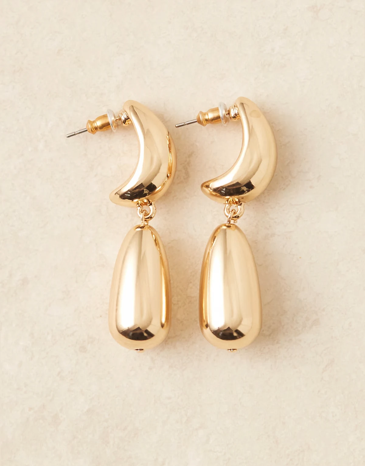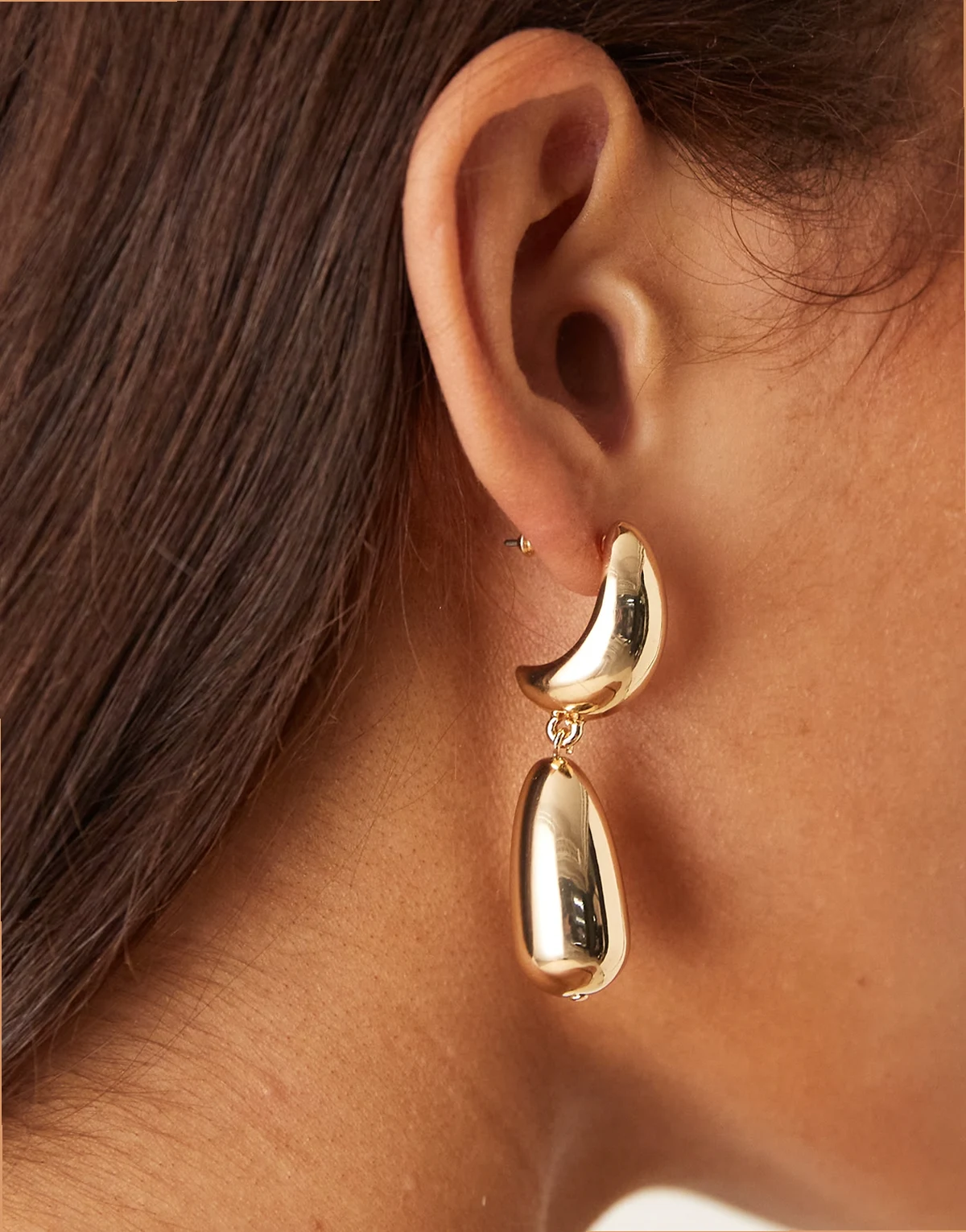– Wiszące kolczyki-wkrętki w złotym kolorze z łezkami