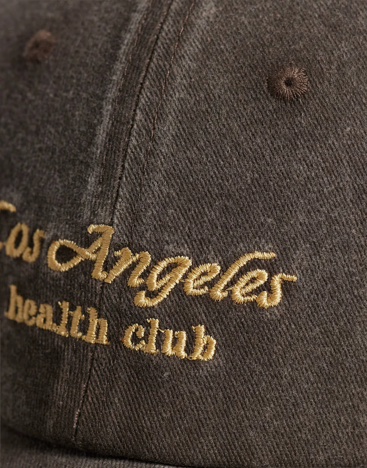 – Brązowa czapka z daszkiem z napisem „Los Angeles Health”