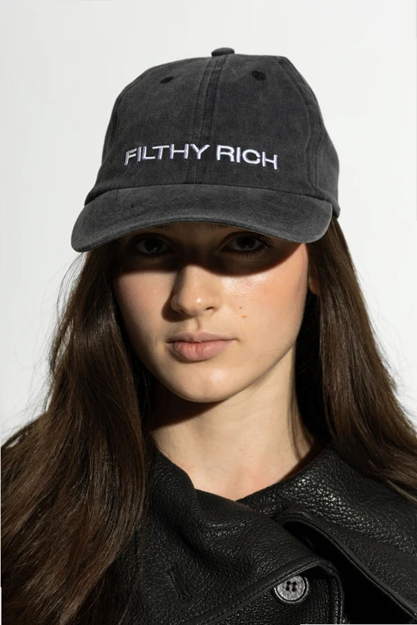 Centralnie umieszczony, haftowany na biało napis „FILTHY RICH” w efektowny sposób kontrastuje z czarną tkaniną, natomiast z tyłu czapki, powyżej otworu regulacyjnego, znajduje się subtelny haft „AVAVAV”, świadczący o dbałości marki o każdy detal. Niewielkie, haftowane otwory wentylacyjne gwarantują komfort noszenia niezależnie od pory roku.