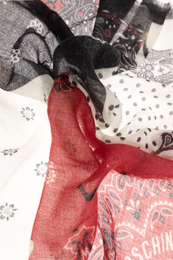 Kaszmirowa chusta z nadrukiem od Moschino to niezwykły akcent garderoby, w którym kunsztowne wzornictwo spotyka się z niepowtarzalnym komfortem. Została wykonana z wysokogatunkowego, szlachetnie lekkiego oraz wyjątkowo miękkiego kaszmiru, którego zwiewność subtelnie otula skórę.