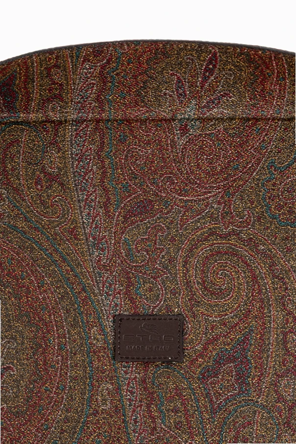 Powierzchnię produktu zdobi bogaty, wielokolorowy wzór paisley, przywodzący na myśl klasyczne motywy ornamentalne. Taca została wykonana z mistrzowskim wyczuciem detalu, przy użyciu wysokogatunkowej bawełny, poliestru oraz polichlorku winylu. W centralnej części znajduje się kunsztowna naszywka z logo, podkreślająca luksusowy charakter wyrobu. Całość utrzymana jest w głębokim, brązowym odcieniu.