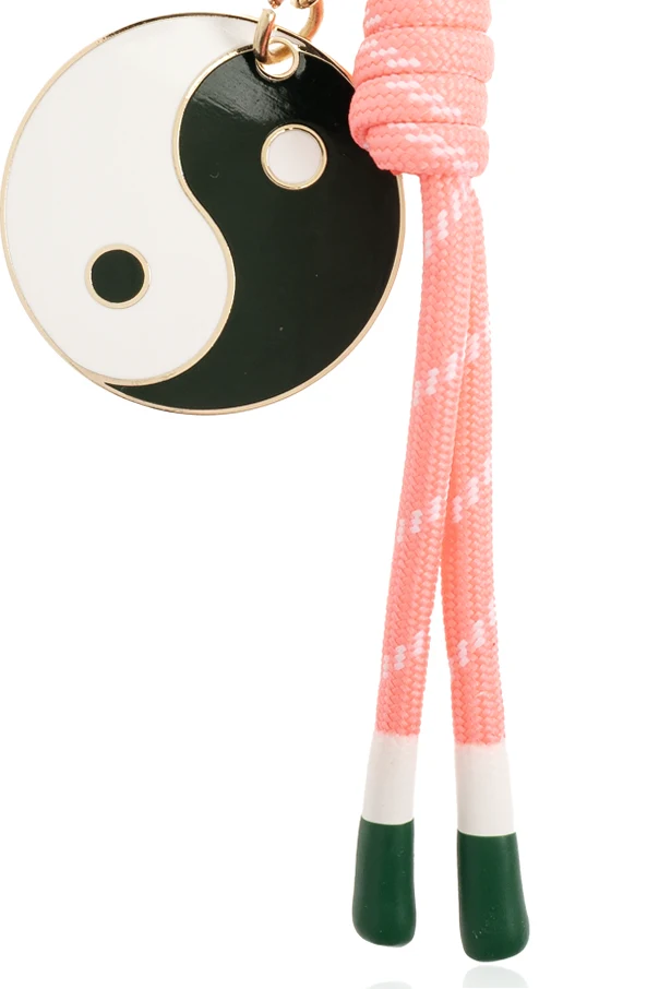 Brelok do kluczy marki The Upside to kwintesencja wyrafinowanego stylu i funkcjonalności. Kompozycja różnorodnych elementów, zdominowana przez motyw koła oraz wytworną złotą kolorystykę, oczarowuje subtelną elegancją. Kluczowym akcentem jest emaliowana zawieszka z symbolem yin-yang w barwach czerni i bieli, która harmonijnie współgra z lśniącym wykończeniem pozostałych, metalowych detali z mosiądzu.