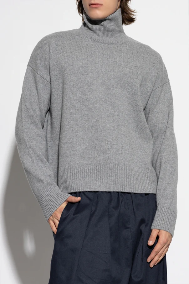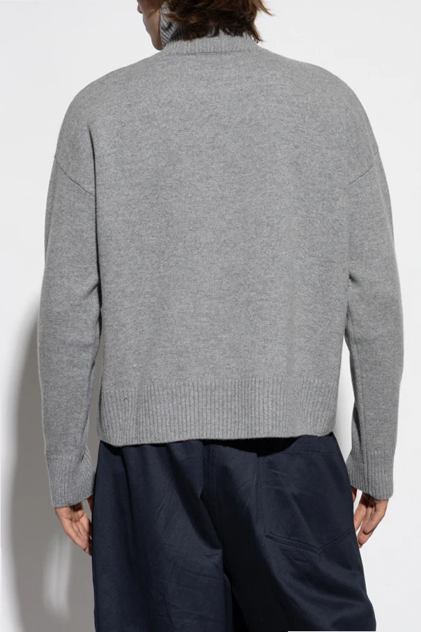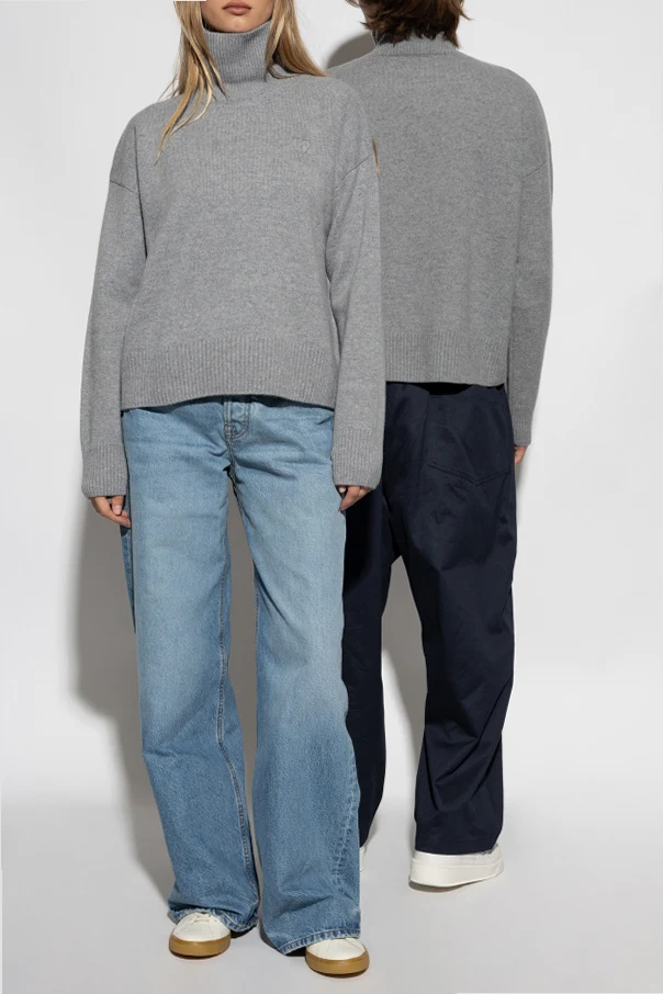 Wełniany golf to uosobienie mistrzowskiego kunsztu i ponadczasowej paryskiej elegancji, sygnowany przez renomowaną markę AMI Alexandre Mattiussi . Utrzymany w szlachetnej, szarej tonacji, wyróżnia się lekko oversize'owym krojem z delikatnie obniżoną linią ramion oraz klasyczną, wysoką stójką typu turtleneck.