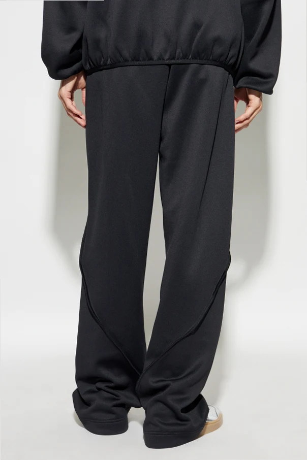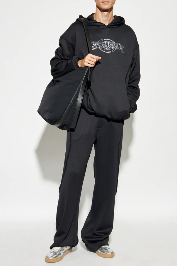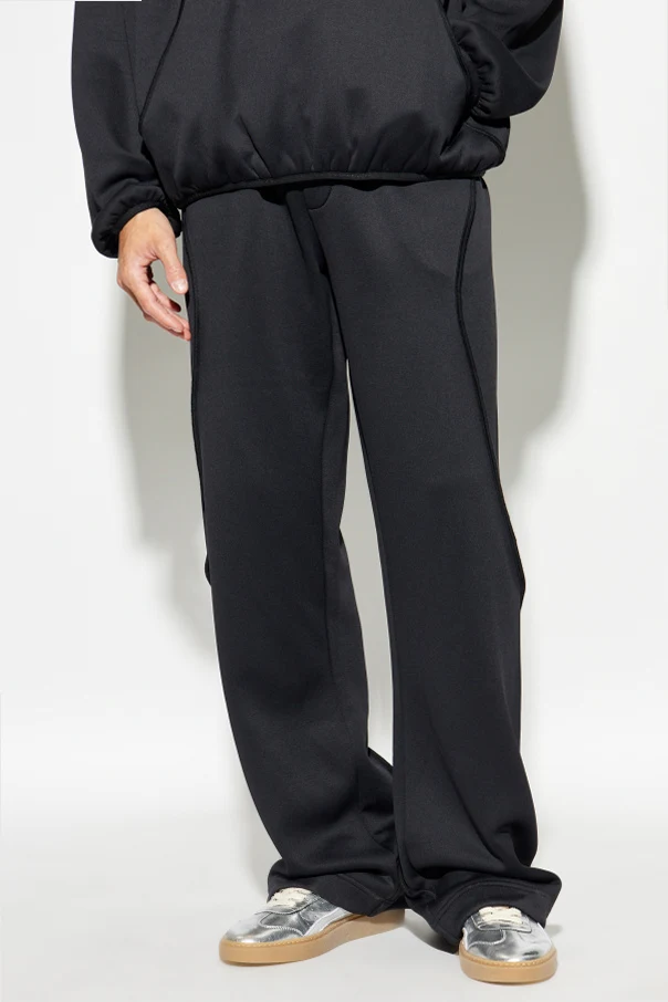 Spodnie dresowe z logo marki Casablanca to wyraz ponadczasowej elegancji w wydaniu codziennym. Swobodny, szeroki fason oraz brak zwężenia przy kostce podkreślają nieformalny charakter modelu, nadając mu wyjątkowo komfortową sylwetkę. Jednolity, głęboki odcień czerni stanowi subtelne tło dla metalicznego, tłoczonego logo projektanta, które zdobi przód spodni, emanując dyskretnym luksusem.