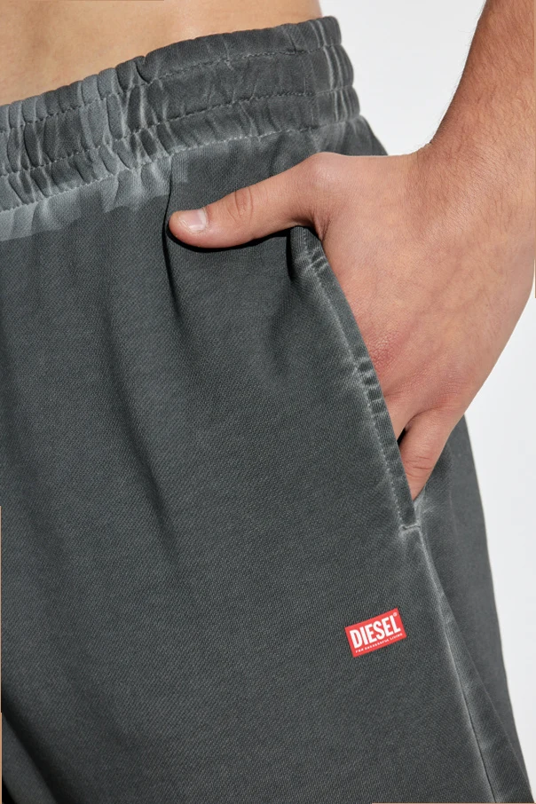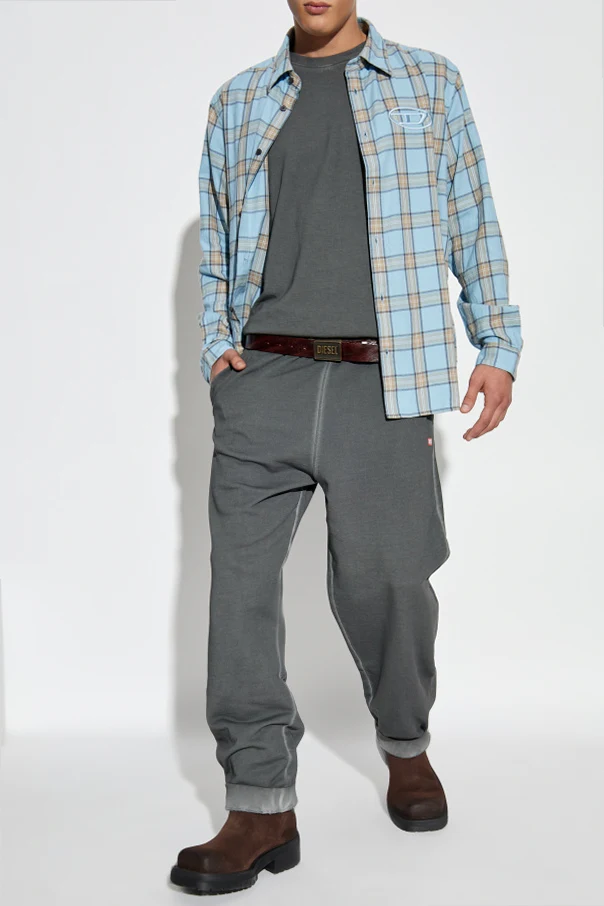 Na uwagę zasługują kontrastowe przeszycia wzdłuż nogawek oraz szeroki, elastyczny pas o subtelnym cieniowaniu, które nadają całości wyrazu i podkreślają sportowy charakter. Praktyczności dodaje obszerna tylna kieszeń, również ozdobiona charakterystycznym przeszyciem. Całość dopełnia subtelne, ale wyraziste logo DIESEL umieszczone z przodu pod kieszenią, które świadczy o ekskluzywnym rodowodzie produktu.