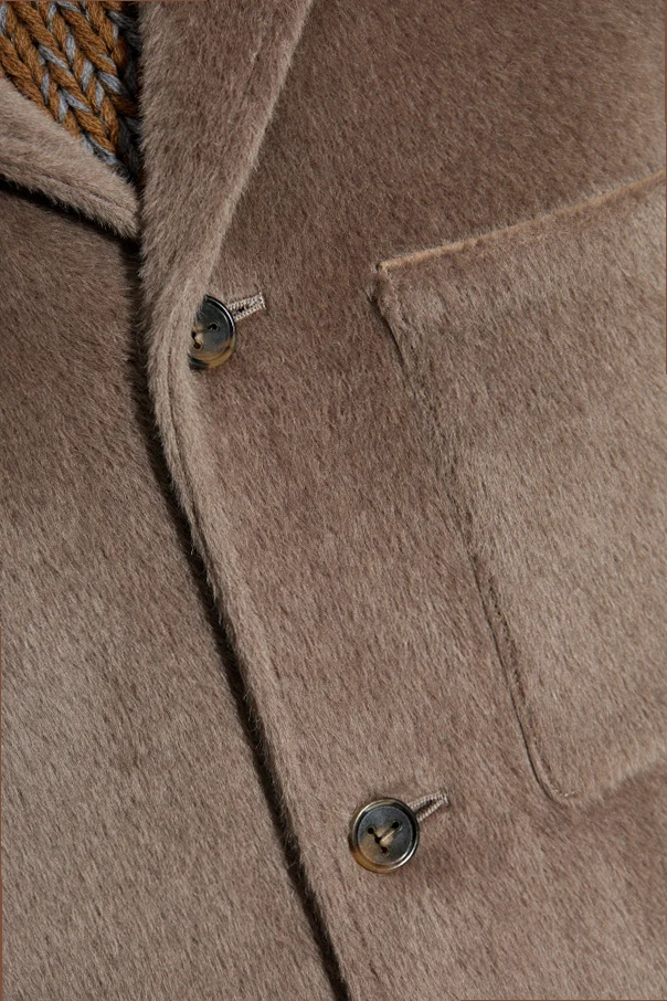 Wełniana kurtka o klasycznej, prostej formie to propozycja dla koneserów wyrafinowanego stylu. Delikatnie pudełkowy krój oraz średnia długość podkreślają swobodny charakter, utrzymany w szlachetnym, ciepłym brązie. Gładka powierzchnia materiału, wykonana z wysokogatunkowej wełny dziewiczej oraz wełny z lamy , zachwyca miękkością i subtelnym, puszystym włosem nadającym luksusowy wygląd.