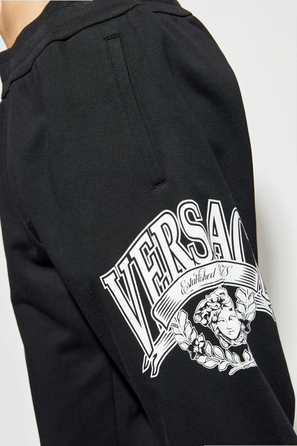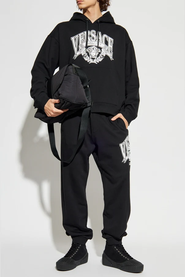Spodnie dresowe Versace to kwintesencja wysublimowanego stylu oraz komfortu, podkreślonego inspirującą estetyką legendarnego Domu Mody Versace. Ich klasyczny fason typu jogger, zwężany ku dołowi i wykończony elastycznymi ściągaczami przy kostkach oraz w pasie, harmonijnie łączy wygodę z ponadczasową elegancją.
