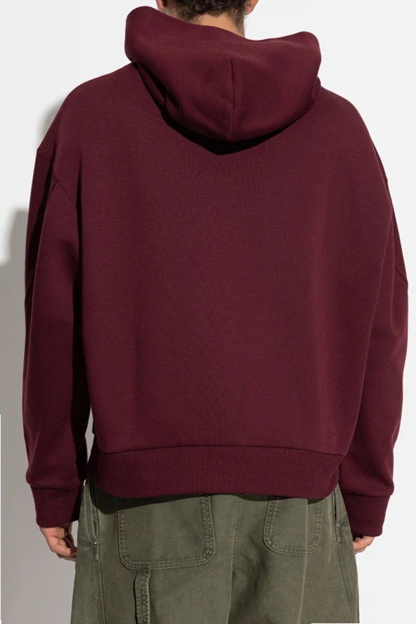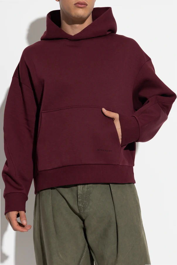 Bluza z logo Givenchy to wyrafinowany wybór dla osób, które cenią ponadczasową elegancję i luksusowy minimalizm. Utrzymana w głęboko burgundowym odcieniu, z klasycznym kapturem bez sznurków, przyciąga spojrzenia subtelną, tonalną haftowaną sygnaturą marki umieszczoną poniżej dużej kieszeni kangurki.