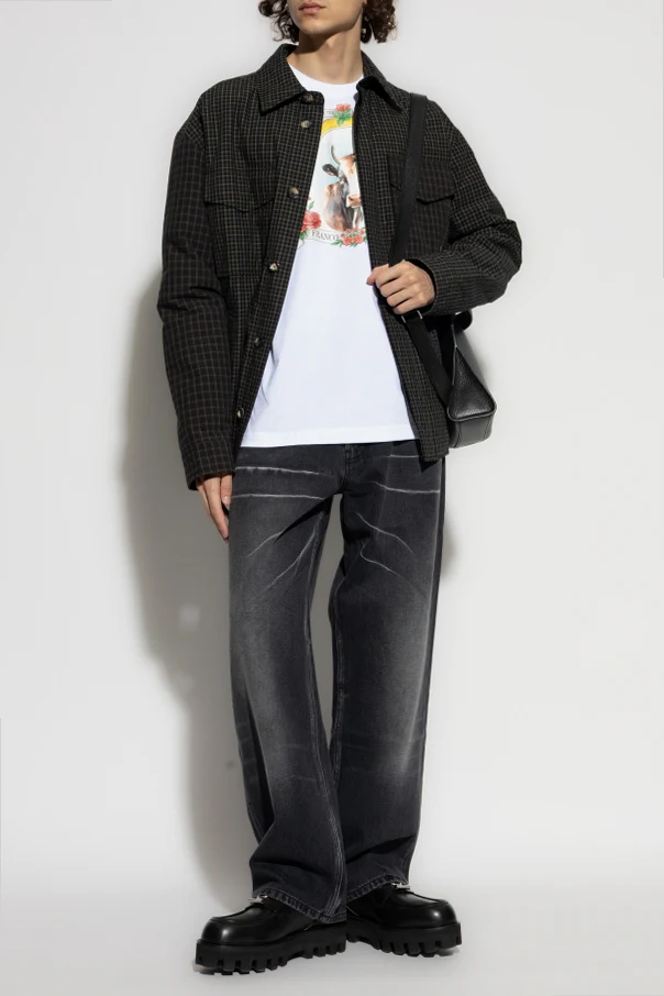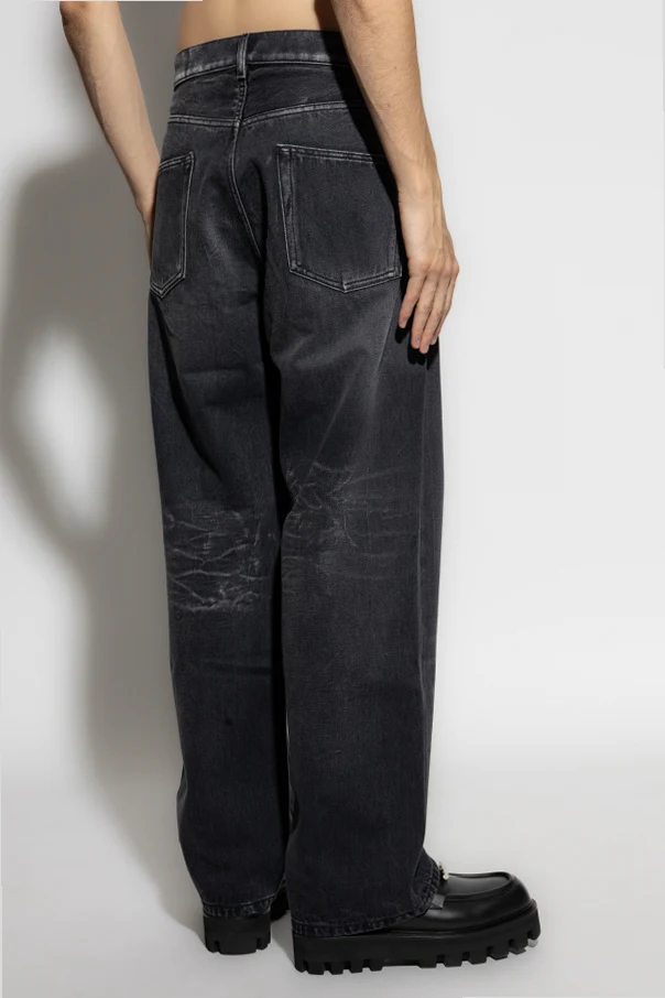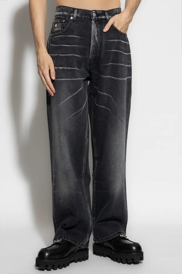 Wykonane z najwyższej jakości, sztywnego denimu, pozbawionego domieszki stretchu, podkreślają strukturalny charakter tkaniny. Pięciokieszeniowy układ oraz mocne przeszycia dopełniają całości, nadając niepowtarzalną trwałość i funkcjonalność. Subtelny emblemat z literą "M" na metalowym guziku stanowi wykwintne nawiązanie do dziedzictwa kreatora – Franco Moschino.