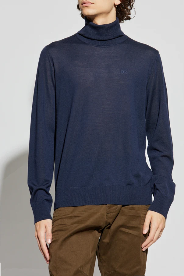 Wełniany golf marki Dsquared2 to synonim wysmakowanego minimalizmu i ponadczasowej elegancji. Utrzymany w głębokim, granatowym odcieniu, klasyczny fason golfu z długimi rękawami i dopasowaną stójką, wykonany z najwyższej jakości wełny, znakomicie podkreśla sylwetkę oraz ceni styl życia oparty na komforcie i luksusie.