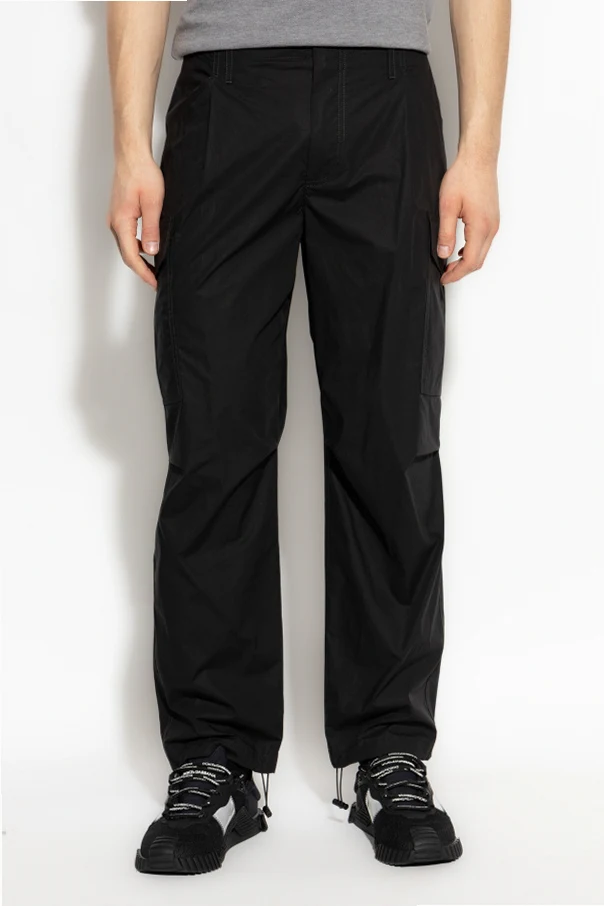 Przedstawiamy czarne spodnie typu cargo , dzieło renomowanej marki Dolce & Gabbana , które stanowią idealne połączenie funkcjonalności i stylu. Zaprojektowane z myślą o mężczyznach, którzy cenią wygodę i elegancję , te spodnie to esencja casualowej klasyki.