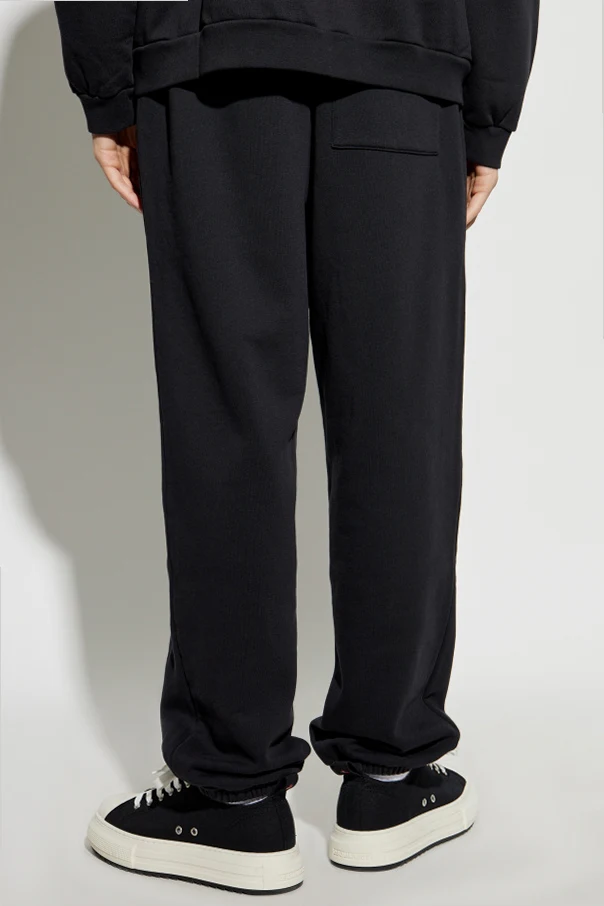 Prezentujemy Spodnie dresowe z logo z ekskluzywnej kolekcji Acne Studios. Wykonane z najwyższej jakości bawełny organicznej , cechują się klasycznym krojem z elastycznym pasem i ściągaczami przy nogawkach. Czerń, dominująca w tych spodniach, nadaje im ponadczasowej elegancji i uniwersalności, idealnej na każdą okazję.
