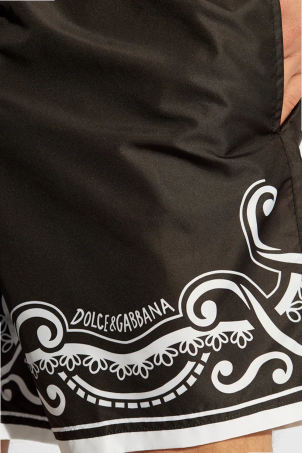 Prezentujemy szorty kąpielowe z nadrukiem od prestiżowej marki Dolce & Gabbana . Te czarne szorty, wykonane z lekkiego i trwałego poliestru, stanowią kwintesencję elegancji i stylu.