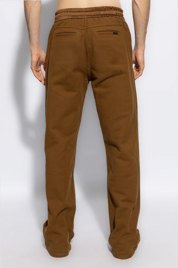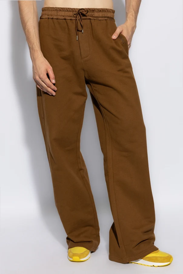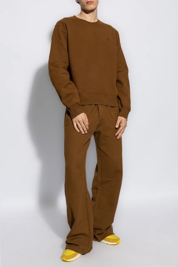 Spodnie dresowe Saint Laurent - apoteoza wygody spleciona z niezachwianą elegancją. Ucieleśnienie luksusu w codziennym wydaniu, to propozycja dla tych, którzy cenią sobie równowagę pomiędzy nieformalną swobodą a wyszukanym stylem. Dominujący odcień brązu w harmonii z gęstą, miękką strukturą bawełny zachwyca swoją jakością oraz komfortem dotyku.