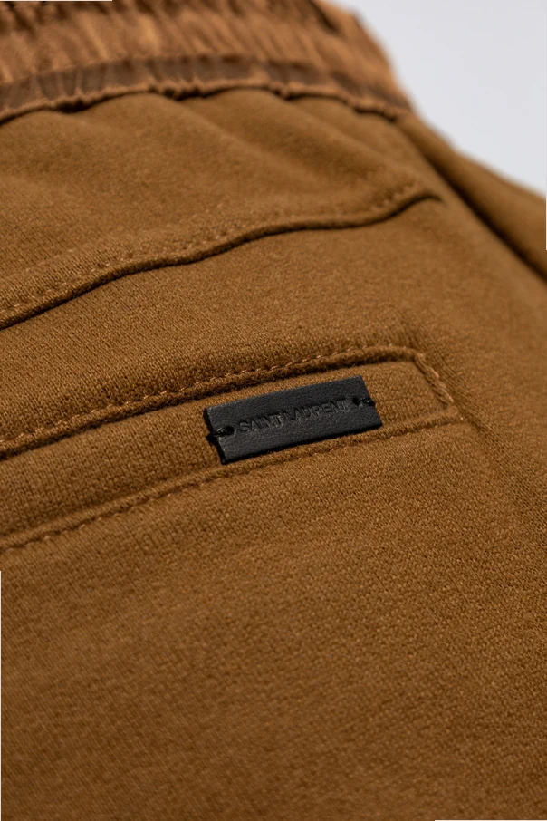 Luźny krój, gwarantujący nieograniczoną swobodę ruchów, zestawiony został z elastyczną talią, wyposażoną w funkcjonalne troki do regulacji, zapewniające optymalne dopasowanie. Proste i szerokie nogawki podkreślają casualowy charakter, nie ograniczając przy tym komfortu użytkowania. Praktyczność tych spodni dresowych podnoszą cztery wsuwane kieszenie, w tym jedna zdobiona dyskretnym, czarnym logo Saint Laurent, co nadaje im unikatowej, ekskluzywnej aury.
