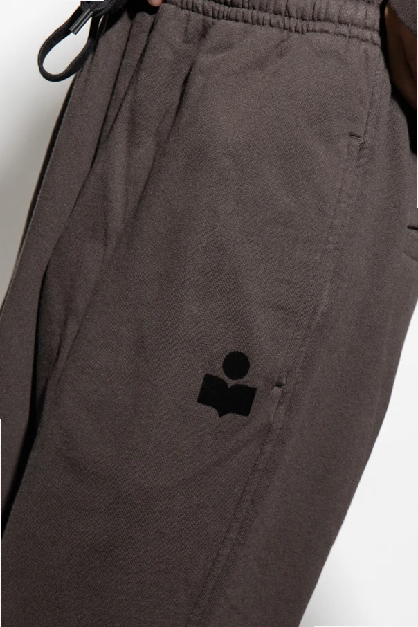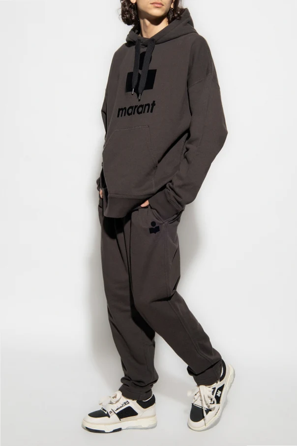 Czarne spodnie dresowe, model ‘Mailesco’ MARANT. Wykonane z bawełny, częściowo organicznej. Z przodu nadrukowane logo o aksamitnym wykończeniu. Cztery wsuwane kieszenie. Długie nogawki zakończone ściągaczem.