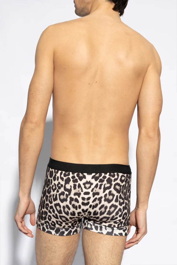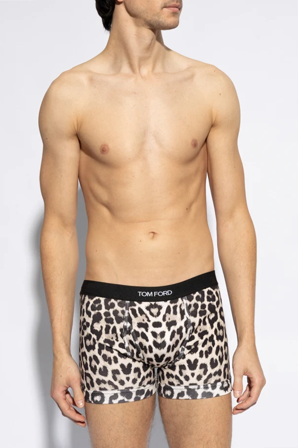 Czarno-kremowe bokserki Tom Ford. Wykonane z bawełny. Ozdobione wzorem z motywem zwierzęcym. W pasie wszyta guma z logo.