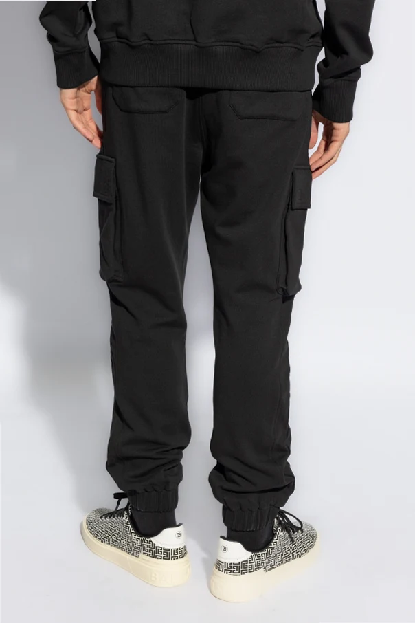 Z przyjemnością prezentujemy Państwu ekskluzywne spodnie dresowe typu ‘cargo’ od renomowanej marki Balmain Paris . Ten wyrafinowany model, wykonany z najwyższej jakości 100% bawełny , gwarantuje nie tylko wyjątkowy komfort noszenia, ale także trwałość i odporność na zniszczenia. Dominujący kolor czarny nadaje spodniom uniwersalny charakter, umożliwiając łatwe dopasowanie do różnorodnych stylizacji.