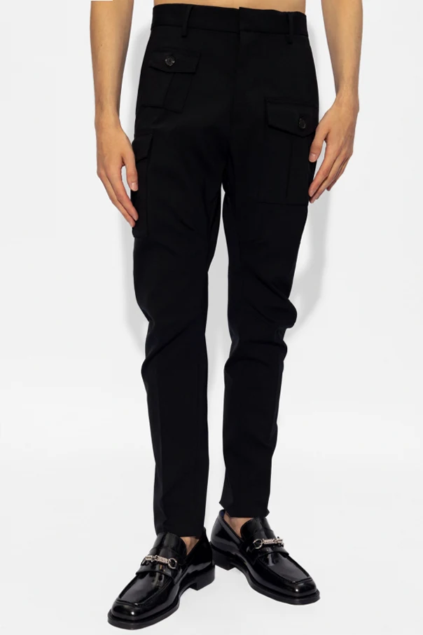 Połączenie funkcjonalności i wyrafinowanego stylu odnajdziecie Państwo w spodniach `Sexy Cargo` od renomowanej marki Dsquared2 . Te czarne spodnie cargo reinterpretują klasyczny design, wprowadzając do niego elementy nowoczesności i ekskluzywności. Wykonane w całości z najwyższej jakości bawełny, gwarantują nie tylko komfort noszenia na co dzień, ale również trwałość i odporność na codzienne użytkowanie.