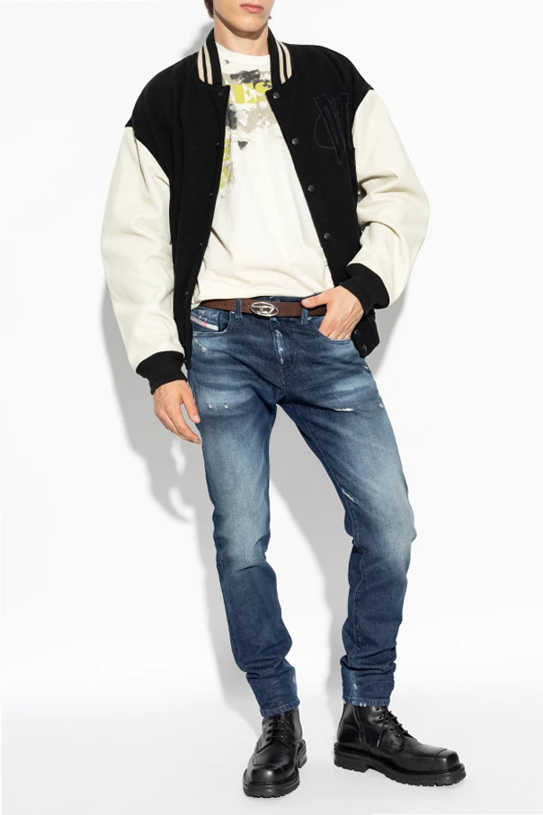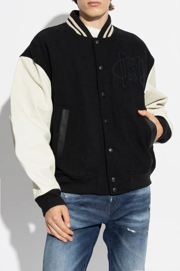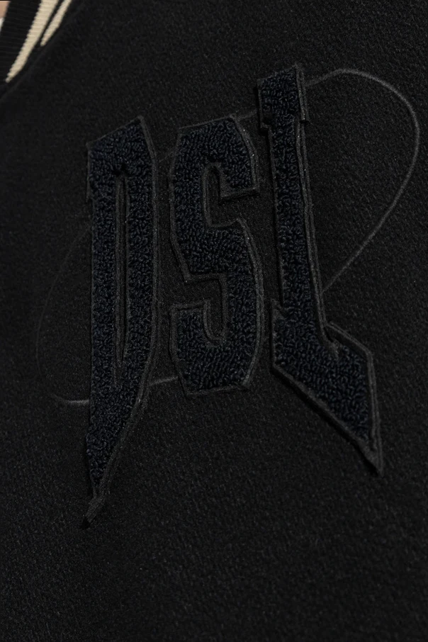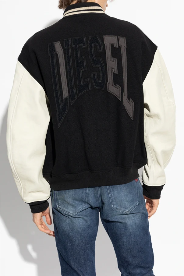 Na piersi znajduje się duże, wyszywane logo „DSL” , a na plecach widoczny jest napis „DIESEL” , co jednoznacznie wskazuje na markę produktu. Prążkowany kołnierz z kontrastowymi paskami to dodatkowy akcent, który nadaje stylu i elegancji.