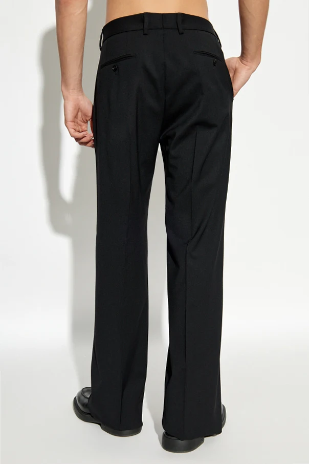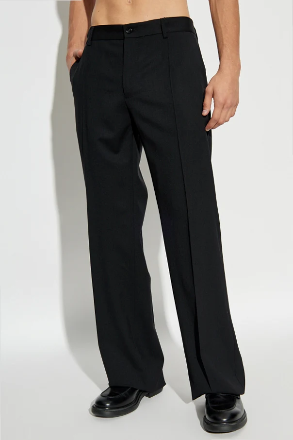 Prezentujemy Wełniane spodnie w kant od renomowanej marki Dolce & Gabbana , które są kwintesencją elegancji i wyrafinowanego stylu. Te czarne spodnie, wykonane z wysokiej jakości wełny z dodatkiem elastanu, zapewniają wyjątkowy komfort noszenia oraz trwałość.