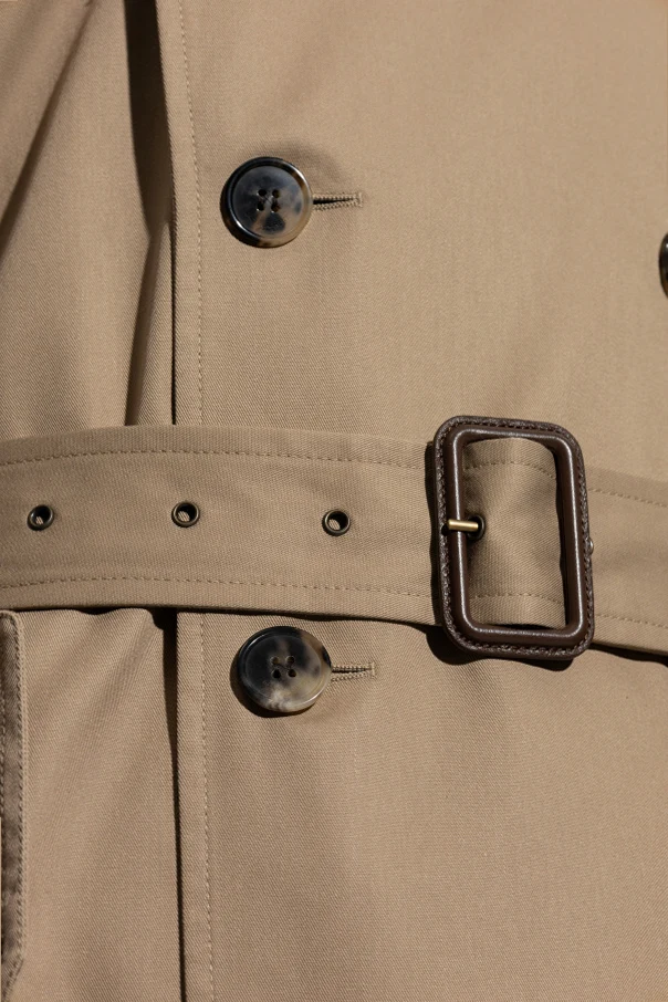 Wykonany z mieszanki poliesteru i bawełny , z jedwabną podszewką, trencz zapewnia najwyższy komfort noszenia. Charakteryzuje się dwurzędowym zapięciem z ciemnymi guzikami, które kontrastują z subtelnym odcieniem beżu. Materiałowy pasek z prostokątną klamrą umożliwia idealne dopasowanie w talii.