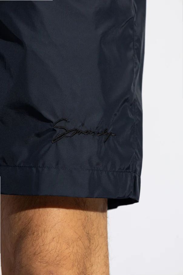 Odkryj eleganckie szorty kąpielowe z logo od marki Givenchy , które łączą w sobie nowoczesność i arystokratyczną elegancję. Wykonane z lekkiego, szybkoschnącego poliamidu, są idealnym wyborem na plażę czy basen. Prosty krój z elastycznym pasem zapewnia niezrównaną wygodę, a granatowy odcień dodaje klasy i subtelności.