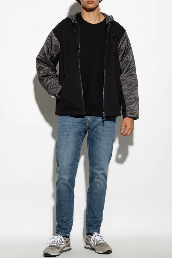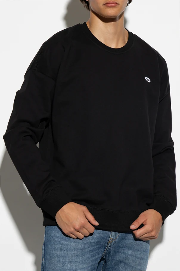 Czarna bluza, model ‘S-ROB-DOVAL-PJ’ Diesel. Wykonana z bawełny. Z przodu naszywka z logo w kolorze czarno-białym. Okrągły dekolt, długie rękawy i dół wykończone ściągaczem.