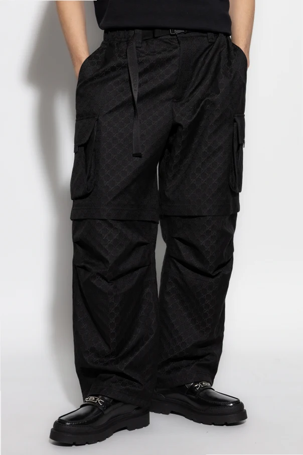 Przedstawiamy Spodnie typu cargo z ekskluzywnej kolekcji marki Gucci, która pod czujnym okiem nowego dyrektora kreatywnego, dyrektor kreatywny, zyskała niepowtarzalny blask. Te spodnie to kwintesencja luksusu i funkcjonalności, idealnie wpisujące się w nowoczesne trendy casualowe.