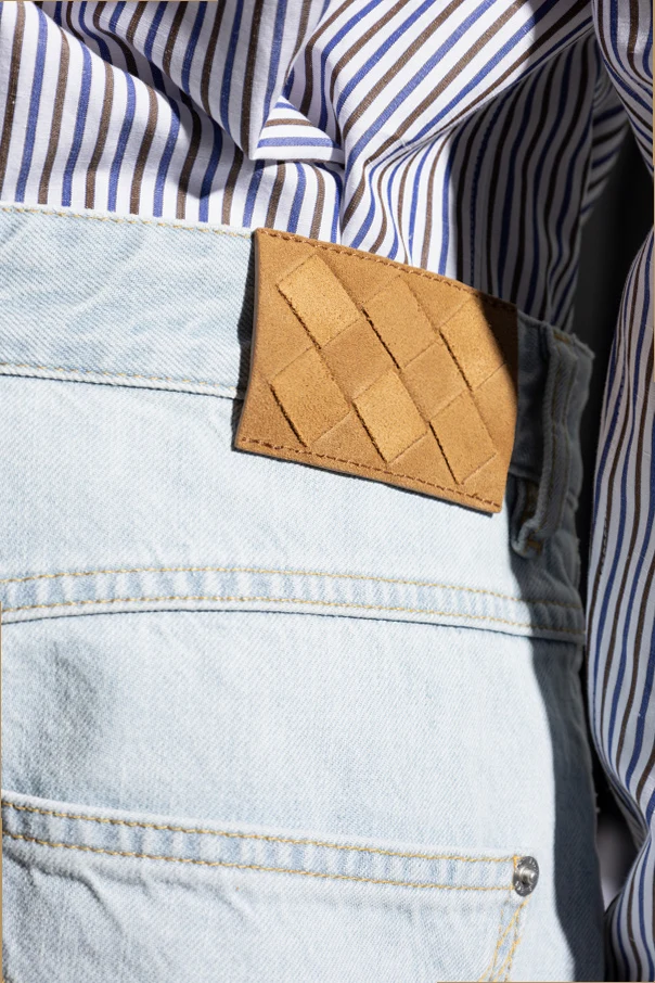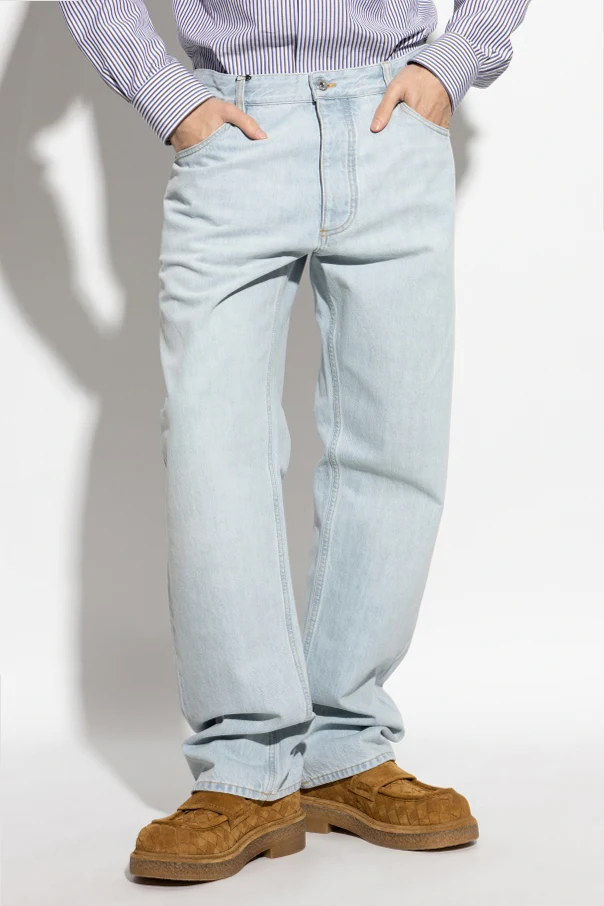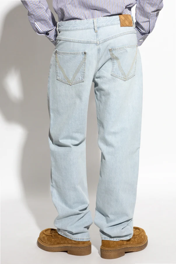 Przedstawiamy jeansy z prostymi nogawkami od renomowanej marki Bottega Veneta – harmonijne połączenie klasyki i nowoczesności. Wykonane z najwyższej jakości materiału, jakim jest czysta bawełna, te jasnoniebieskie jeansy wyróżniają się solidnym, nieelastycznym materiałem, który podkreśla ich ponadczasowy charakter.