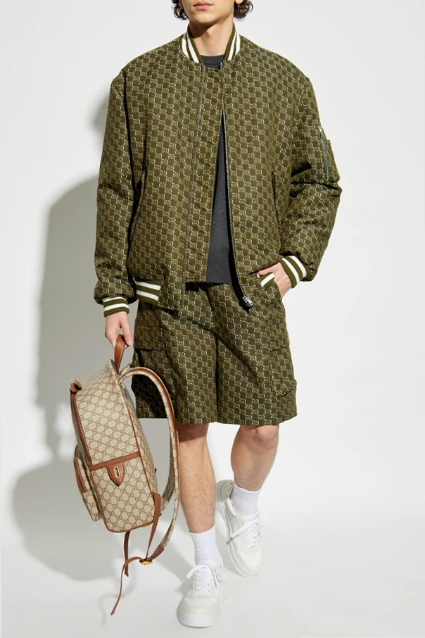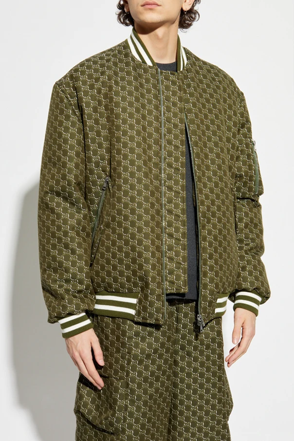 Przedstawiamy ocieplaną kurtkę typu bomber od renomowanej marki Gucci , która łączy w sobie wyrafinowaną estetykę z funkcjonalnością. Wykonana z solidnej bawełny i wypełniona ciepłym poliestrem, jest idealnym wyborem na chłodniejsze dni. Dominujący zielony kolor oraz monogramowy wzór podkreślają luksusowy charakter produktu.