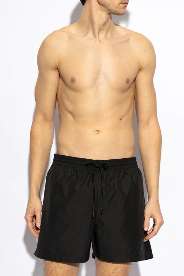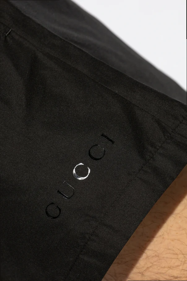Odkryj wyjątkową elegancję czarnych szortów kąpielowych od marki Gucci, będących ucieleśnieniem luksusu i wyrafinowania. Te klasyczne szorty, sięgające do połowy uda, wykonano z lekkiego, szybkoschnącego poliamidu, idealnego na plażę lub basen.