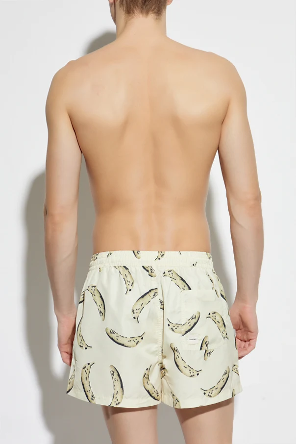 Wykonane z lekkiego, szybkoschnącego poliestru, stanowią doskonały wybór na plażę lub basen. Klasyczny krój z elastycznym pasem i sznurkiem do regulacji zapewnia niezrównany komfort noszenia, a boczne kieszenie dodają praktyczności. Szorty wyróżniają się jasnokremowym odcieniem, który subtelnie kontrastuje z wyrazistym nadrukiem.