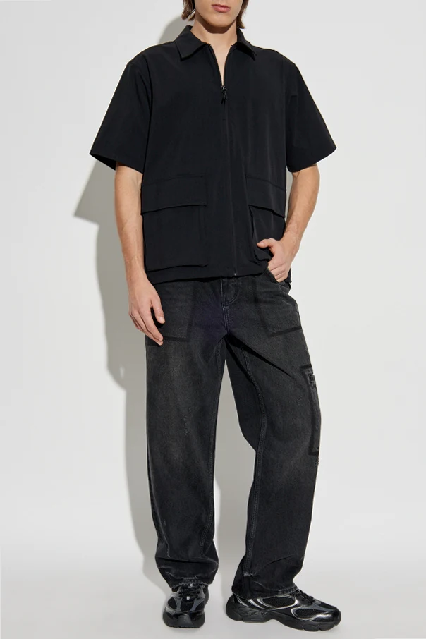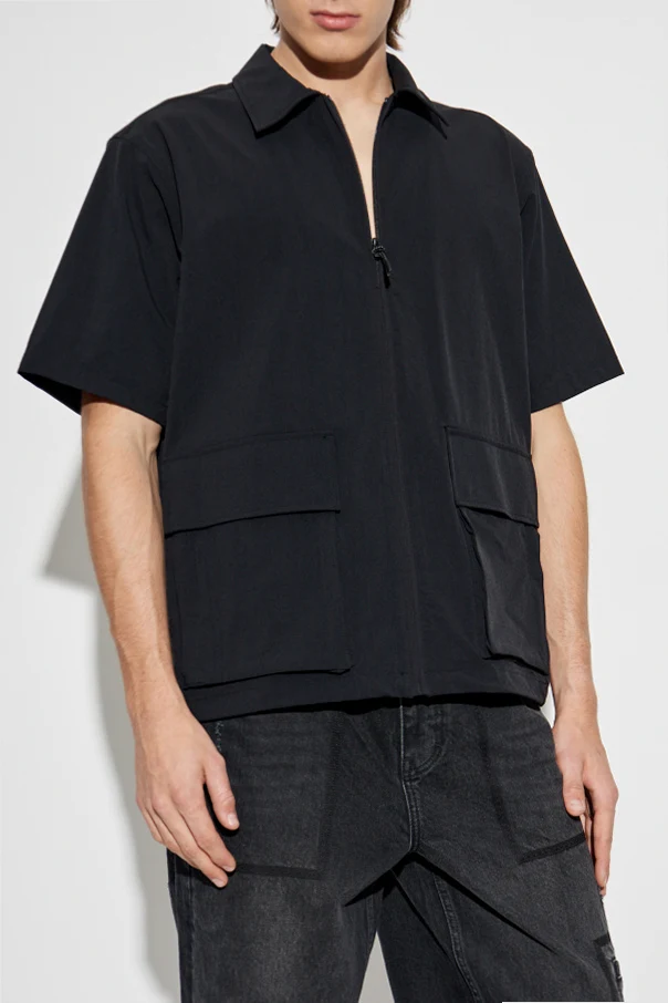 Ten wyjątkowy element garderoby wyróżniają duże, prostokątne kieszenie oraz nowoczesne zapięcie na zamek błyskawiczny , które dodaje funkcjonalności i stylu. Gładka, jednolita czarna barwa sprawia, że koszula idealnie wpisuje się w estetykę casual, będąc doskonałym wyborem na mniej formalne okazje.