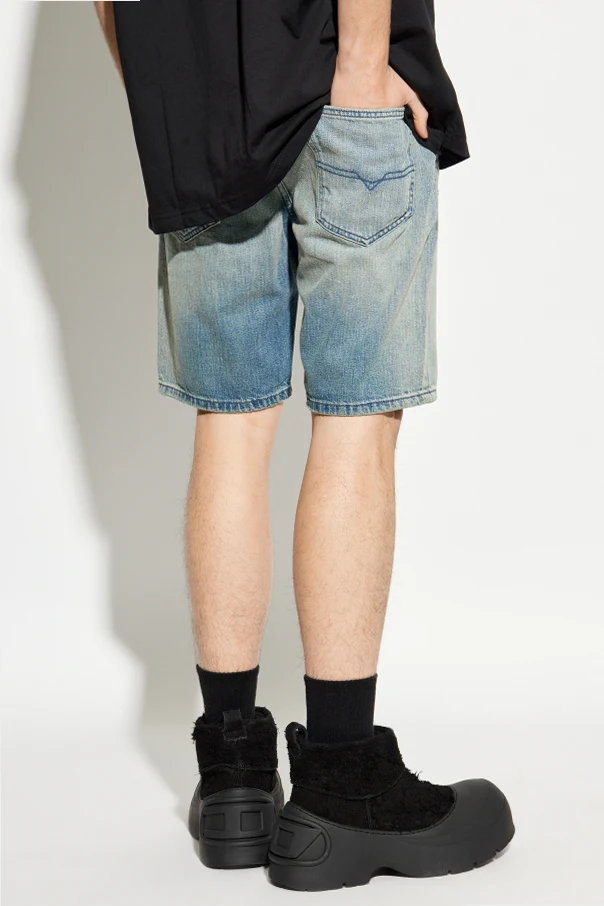 Detaliczne obszycia oraz metalowe nity nadają tym szortom industrialnego charakteru, a napis "Diesel Industry" na małej kieszonce podkreśla prestiżowy rodowód i identyfikację marki. Standardowy krój paska z praktycznymi szlufkami pozwala na dopełnienie stylizacji ulubionym paskiem.
