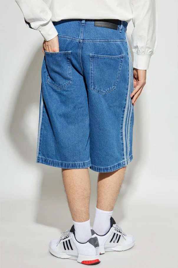 Szorty wykonano z wysokogatunkowego, niebieskiego denimu o średniej tonacji, co gwarantuje nie tylko wyjątkową trwałość, ale i wyrafinowaną głębię barw. Ozdobione trzema kontrastowymi paskami wzdłuż bocznych szwów – legendarnym symbolem marki – stanowią ukłon w stronę kultowego stylu vintage . Białe, haftowane logo Adidas Trefoil na lewej nogawce dodaje całości prestiżu, zaś detale takie jak metalowe nity, guzik przy rozporku oraz klasyczne przeszycia akcentują najwyższą jakość wykonania.