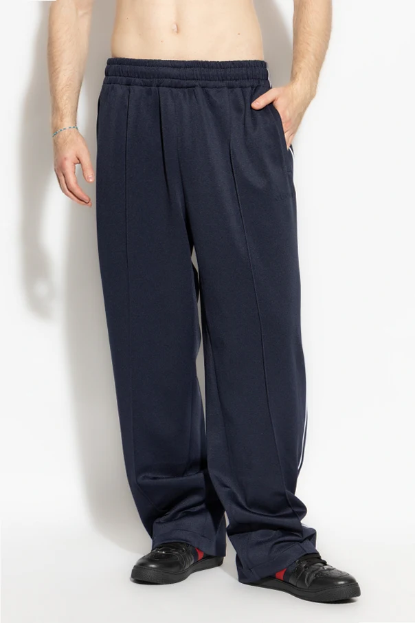 Spodnie dresowe z wypukłym logo marki Gucci to synonim nieprzemijającej elegancji, której źródłem jest ponadstuletnie dziedzictwo rzemieślnicze. Model ten zachwyca swobodnym, prostym fasonem z wpuszczanymi bocznymi kieszeniami oraz dodatkową kieszenią z tyłu, zapewniając funkcjonalność i komfort w codziennym użytkowaniu.