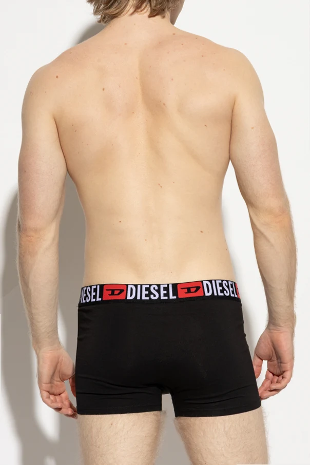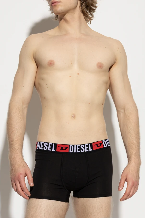 Zestaw obejmuje pięć jednolitych, czarnych bokserek o gładkiej powierzchni, wyróżniających się szerokim, elastycznym pasem z wyrazistym, kontrastowym brandingiem marki Diesel. Charakterystyczne białe litery oraz kultowe czerwone logo podkreślają unikatowość produktu premium i wyrafinowany gust właściciela.