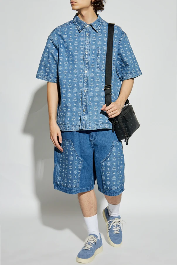 Luźny, komfortowy fason akcentuje szerokie nogawki sięgające kolan, wzbogacone geometrycznymi przeszyciami. Wyjątkową ozdobą szortów są kontrastowe wstawki pokryte jasnym monogramem marki, znakomicie harmonizujące z minimalistycznymi partiami materiału. Zastosowanie skórzanej aplikacji z tłoczonym logotypem MCM podkreśla ekskluzywny i niepowtarzalny charakter projektu.